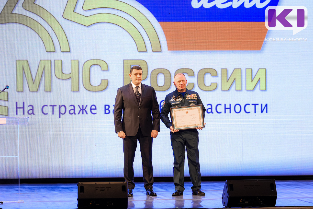 В Коми республиканской филармонии в честь 35-летия образования МЧС наградили пожарных и спасателей.