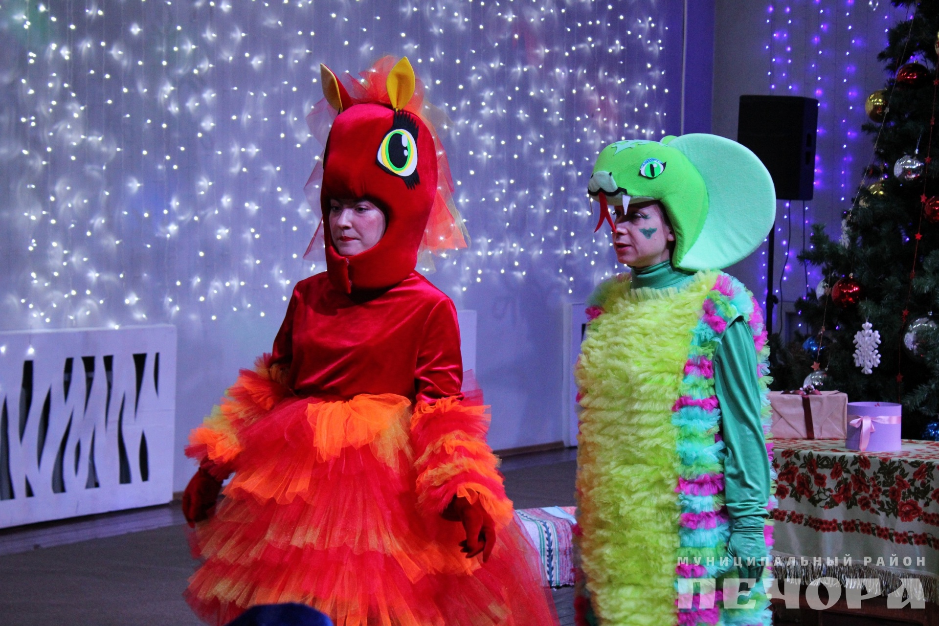 Для гостей был подготовлен яркий и увлекательный новогодний утренник под названием "Новогоднее вторжение". Театрализованное представление с участием любимых персонажей народного фольклора, включая ростовую куклу, подарило детям море положительных эмоций. Интерактивные игры и веселый хоровод вокруг елки создали атмосферу настоящего праздника. А по окончании программы дети получили подарки от главы Республики Коми Ростислава Гольдштейна.