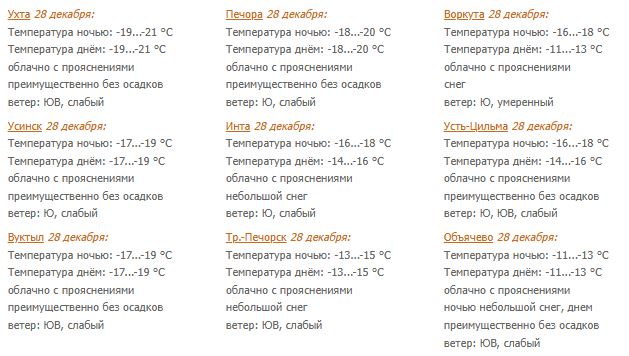 Прогноз погоды по республике  на 28 декабря подготовил Коми ЦГМС.