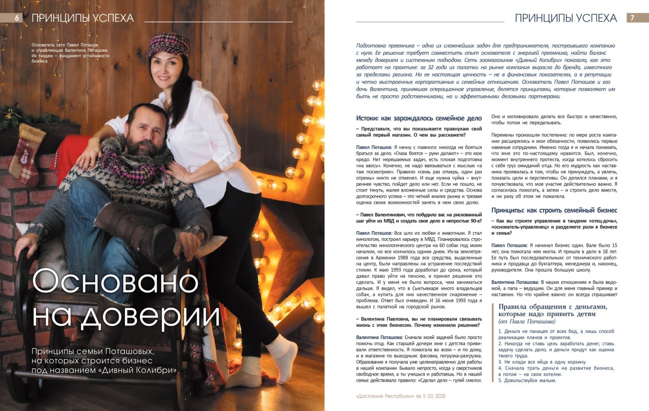 На страницах свежего номера издания "Достояние Республики" отец и дочь Поташовы рассказывают о том, как компания "Дивный Колибри" за 32 года из палатки на рынке выросла до бренда, известного за пределами Республики Коми.