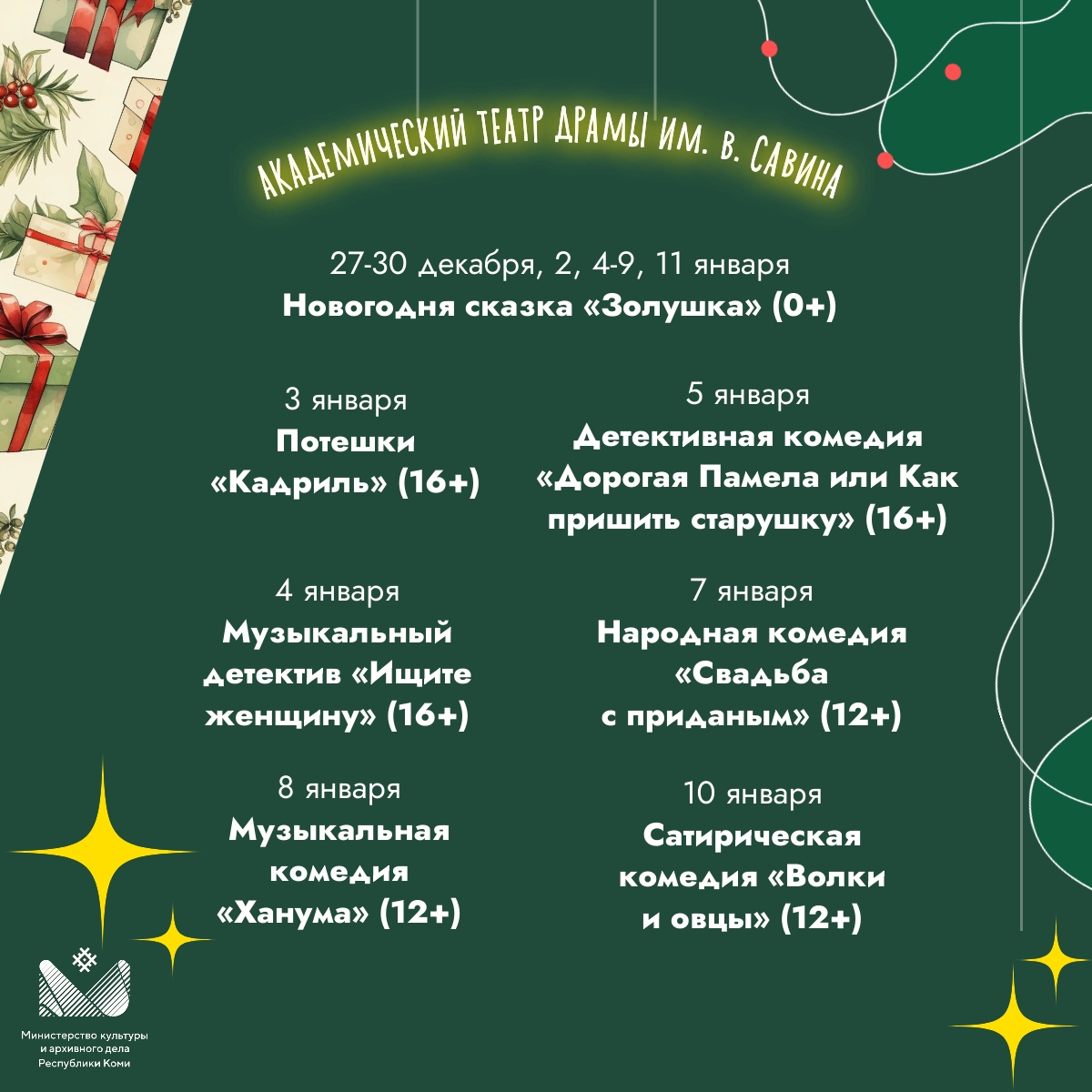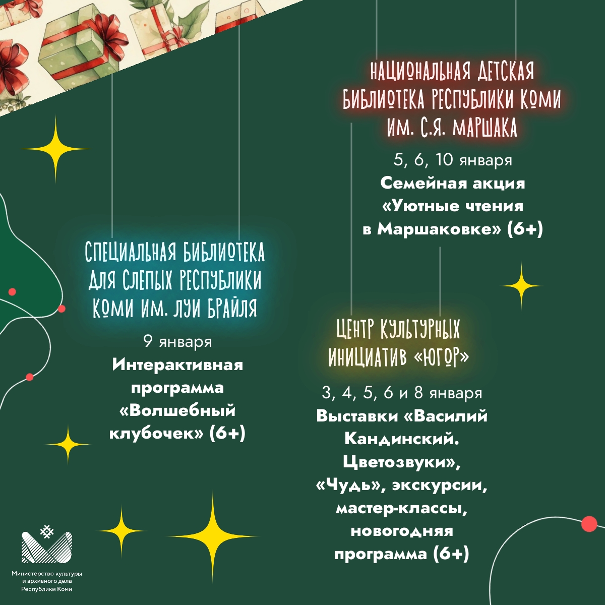 Министерство культуры и архивного дела Республики Коми предлагает ознакомиться с подборкой культурных событий, которые проведут государственные учреждения культуры региона в период праздничных выходных дней.