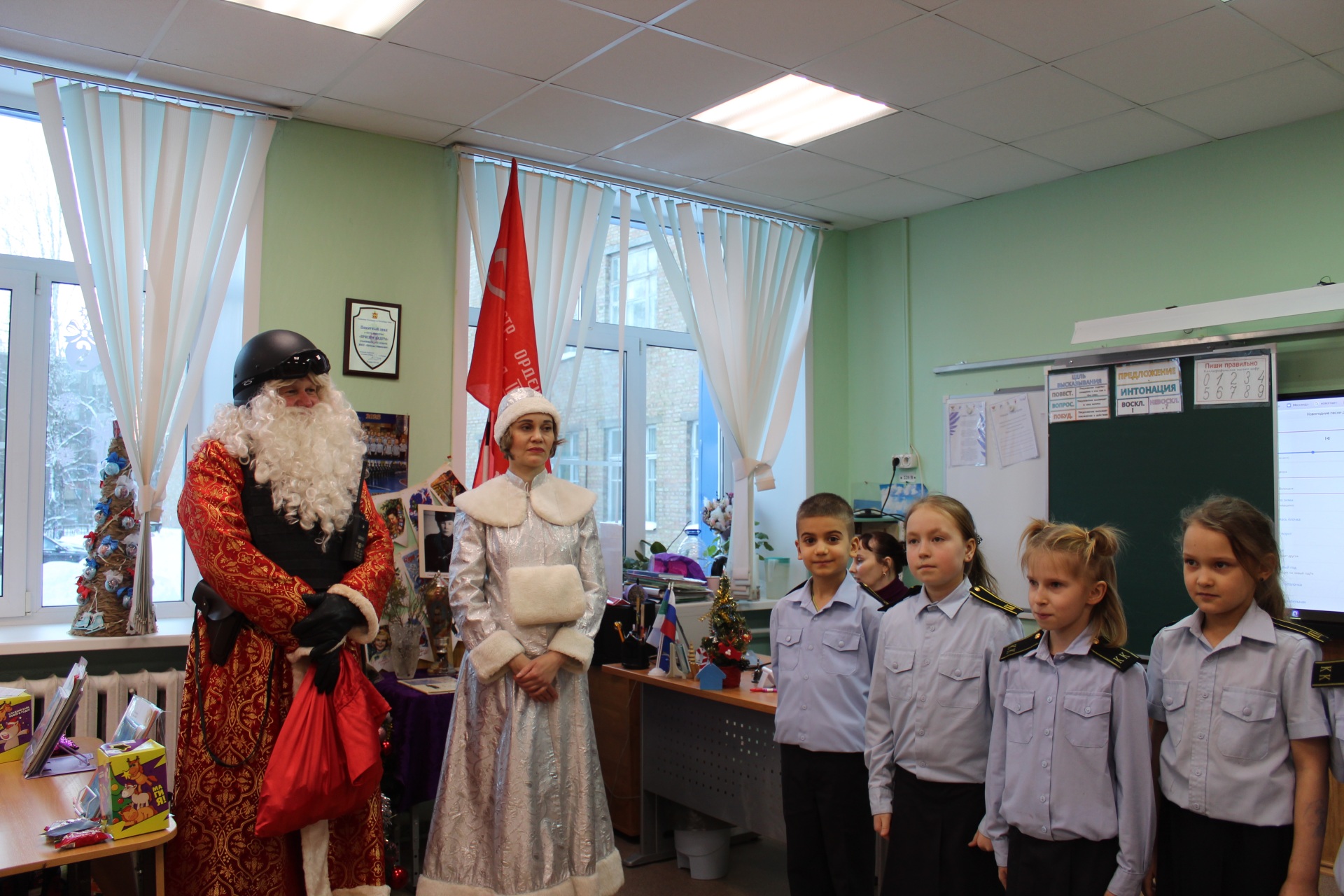 Девчонки и мальчишки с радостью встретили новогодних персонажей. Дед Мороз и Снегурочка пожелали ребятам крепкого здоровья, успехов в учёбе, исполнения заветных желаний и хорошего настроения в наступающем году. В ходе праздничной встречи кадетам были вручены грамоты за старание и достижения в учёбе, а также сладкие подарки. Тёплая атмосфера, улыбки и искренние эмоции детей стали лучшей наградой для сотрудников Росгвардии.