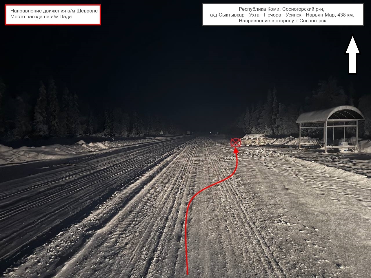 ДТП произошло 4 января в 15:09. Водитель 1975 года рождения, управляя Chevrolet Niva, двигался по автодороге Сыктывкар - Ухта - Печора - Усинск - Нарьян-Мар со стороны Печоры в направлении Сосногорска. На 438 километре дороги мужчина не справился с управлением, в результате чего наехал на стоящую на правой обочине Lada Largus.