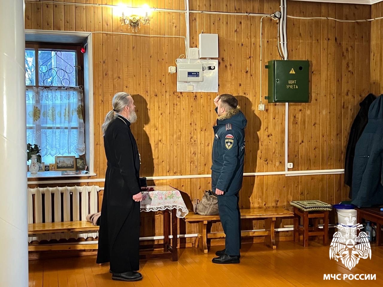Инспекторы государственного пожарного надзора провели противопожарные инструктажи со священнослужителями и обслуживающим персоналом. Сотрудники МЧС напомнили правила пожарной безопасности, порядок действий при пожаре, а также проверили знания по применению первичных средств пожаротушения. Особое внимание было уделено состоянию путей эвакуации, наличию и исправности автоматических систем противопожарной защиты зданий и первичных средств пожаротушения.