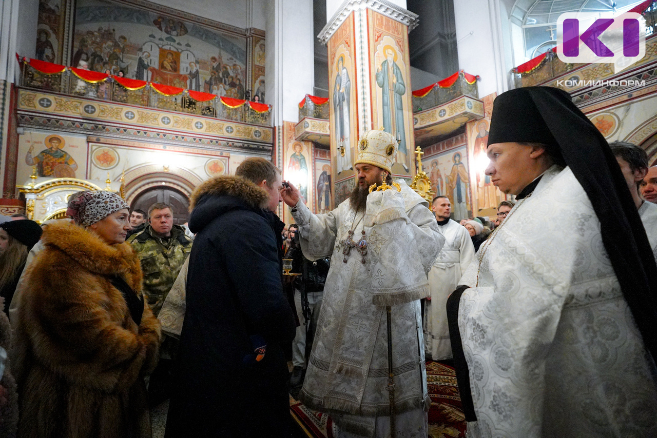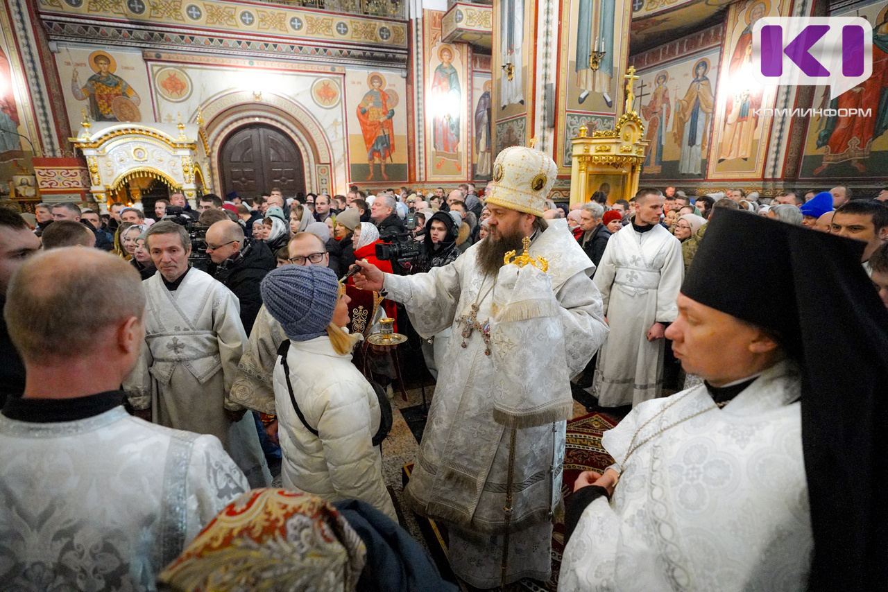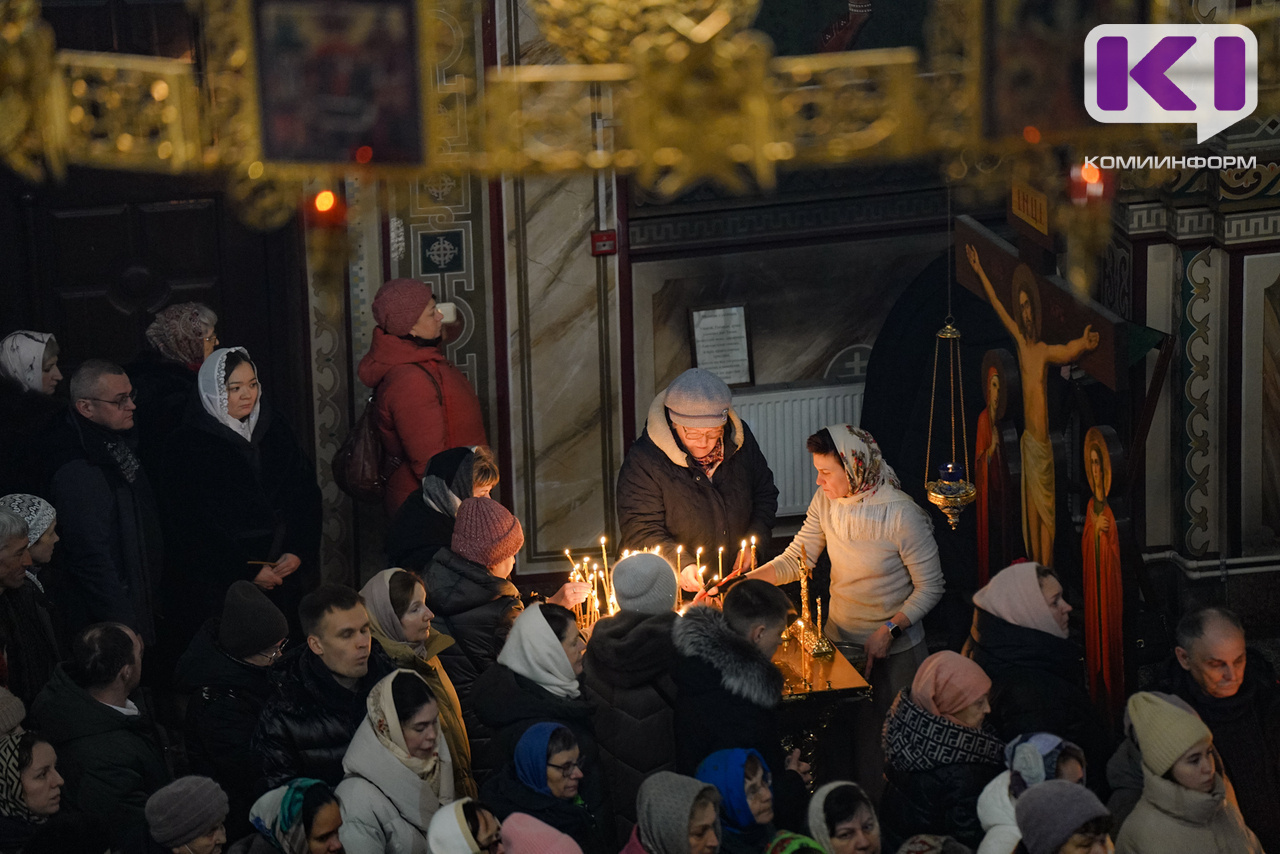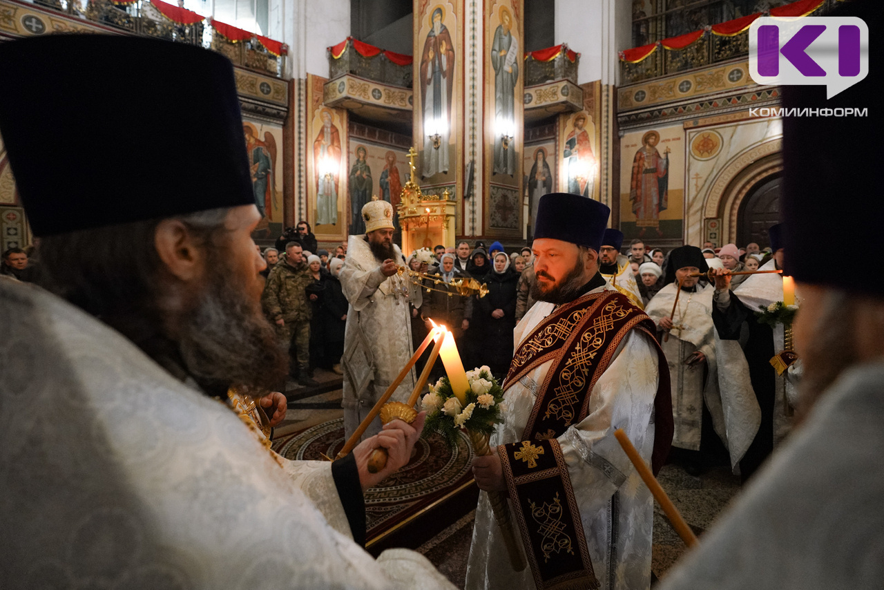 Верующие Коми отстояли Великое Повечерие, Утрени, чтение Часов и собственно Божественную литургию, на которой таинство евхаристии (или Причащения Святых Христовых таин) стремятся совершить сотни верующих, подводя итог долгому посту и ожидания главного праздника - рождения Богочеловека.