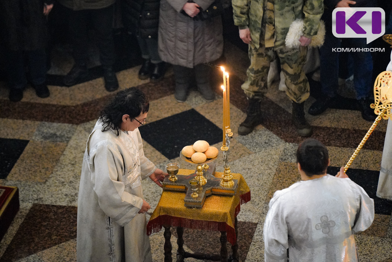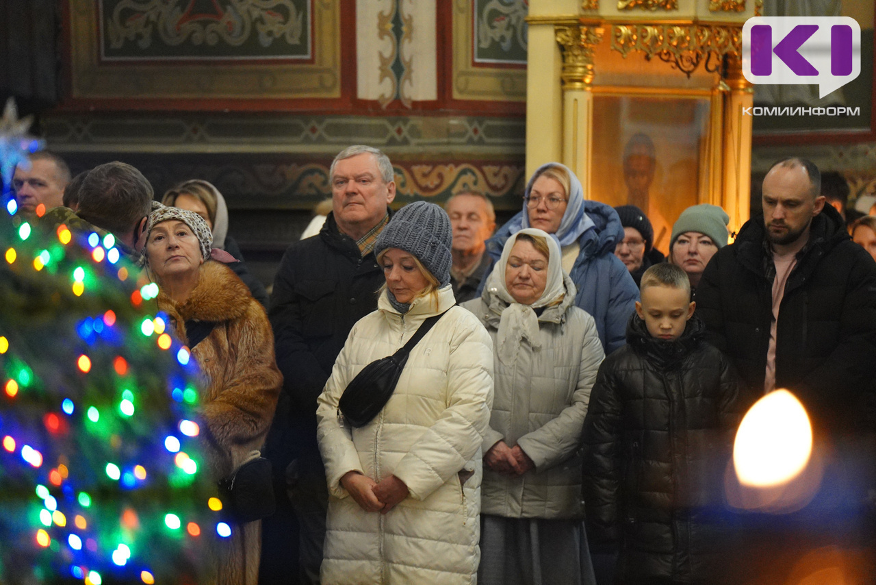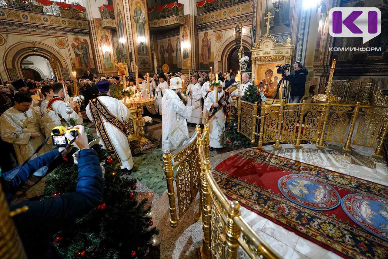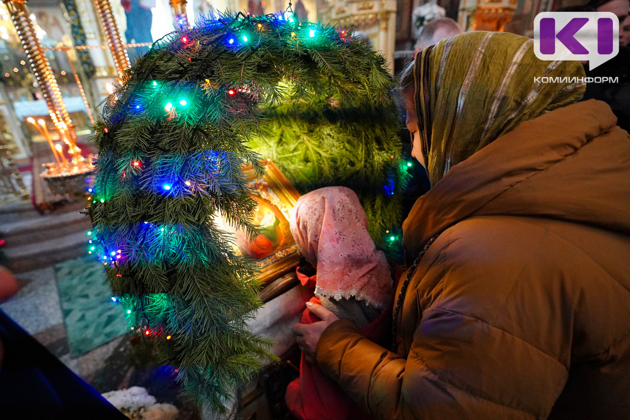 Верующие Коми отстояли Великое Повечерие, Утрени, чтение Часов и собственно Божественную литургию, на которой таинство евхаристии (или Причащения Святых Христовых таин) стремятся совершить сотни верующих, подводя итог долгому посту и ожидания главного праздника - рождения Богочеловека.