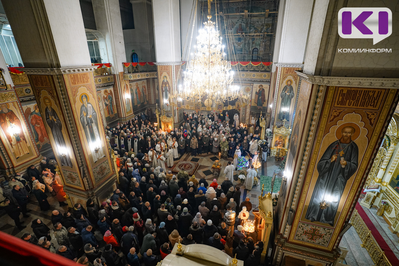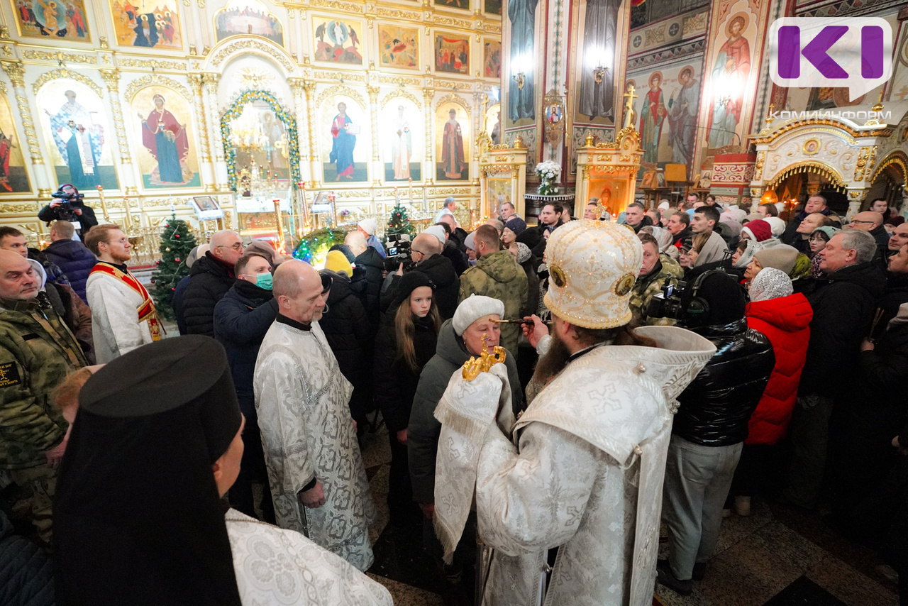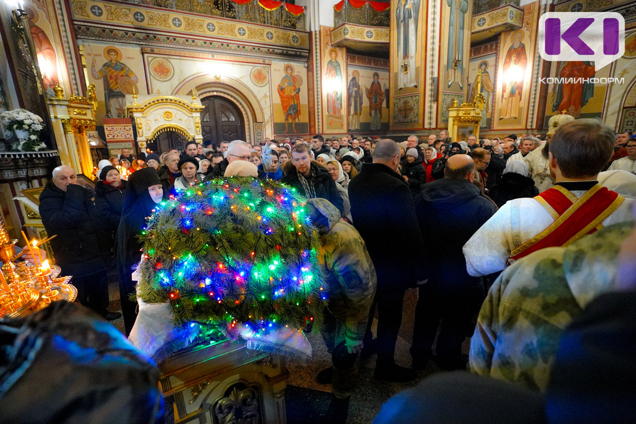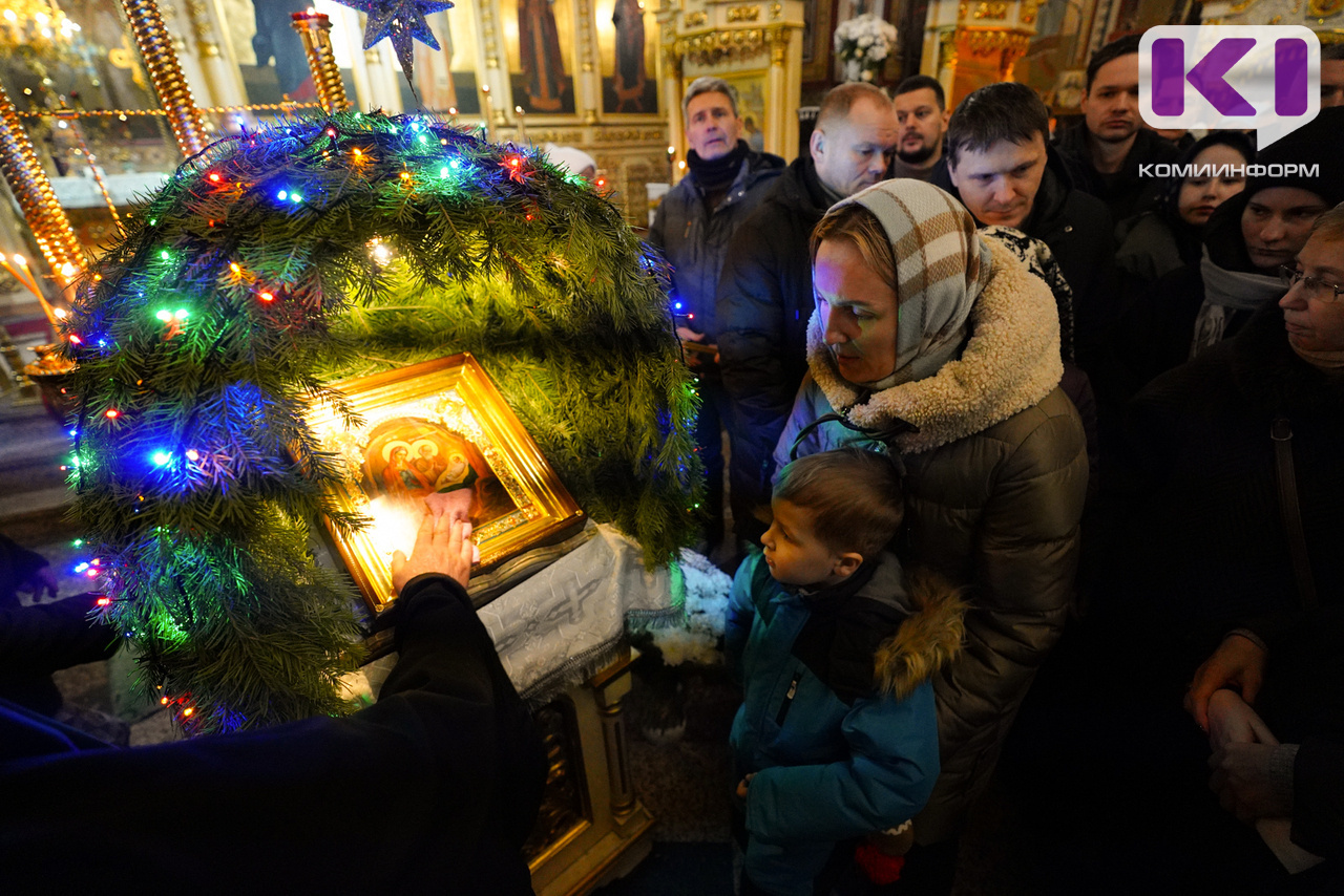 Верующие Коми отстояли Великое Повечерие, Утрени, чтение Часов и собственно Божественную литургию, на которой таинство евхаристии (или Причащения Святых Христовых таин) стремятся совершить сотни верующих, подводя итог долгому посту и ожидания главного праздника - рождения Богочеловека.