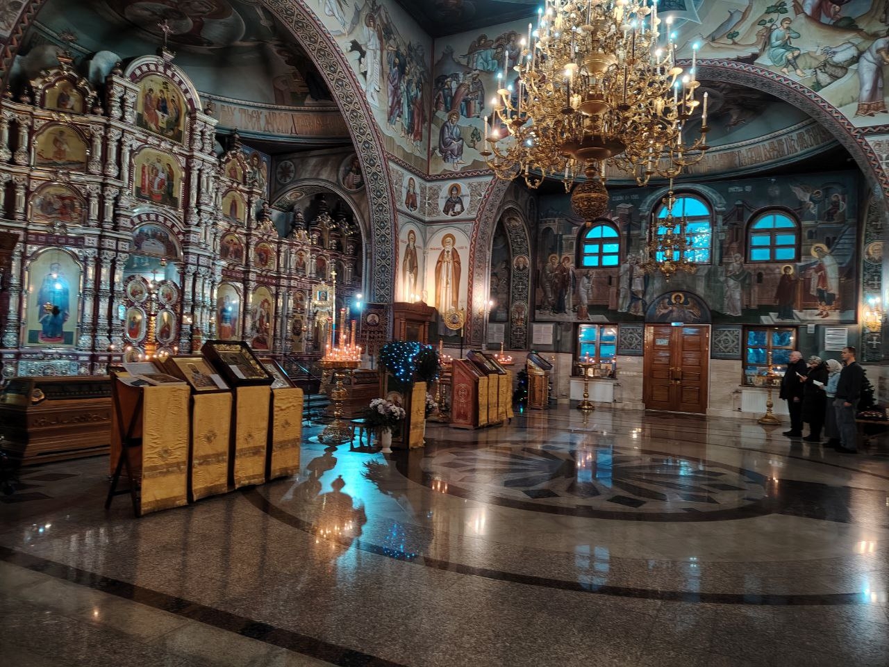 Праздничное Всенощное бдение и Крестный ход прошли в храме Воскресения Христова в Усинске - одном из самых больших храмов республики. По традиции служба здесь стала самой многочисленной и собрала десятки прихожан. Храм известен настенной росписью и уникальным фаянсовым иконостасом и считается вторым по красоте в Коми после Свято-Стефановского кафедрального собора в Сыктывкаре.