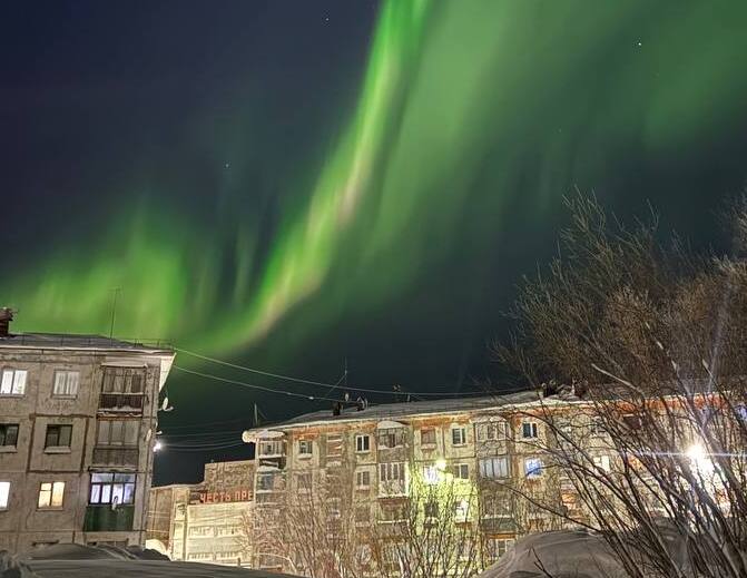Красивое свечение было заметно не только в заполярных районах, но и, например, в Инте, где картина также была впечатляющей. Фото Владислава Коваля (МЧС Инта).