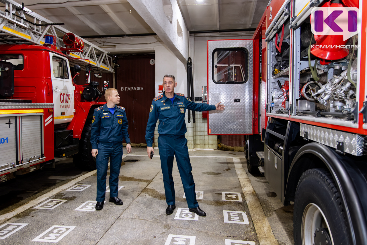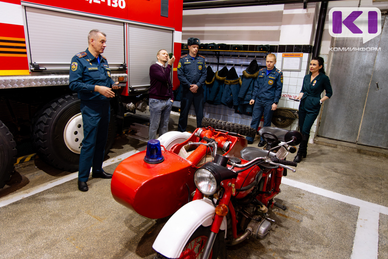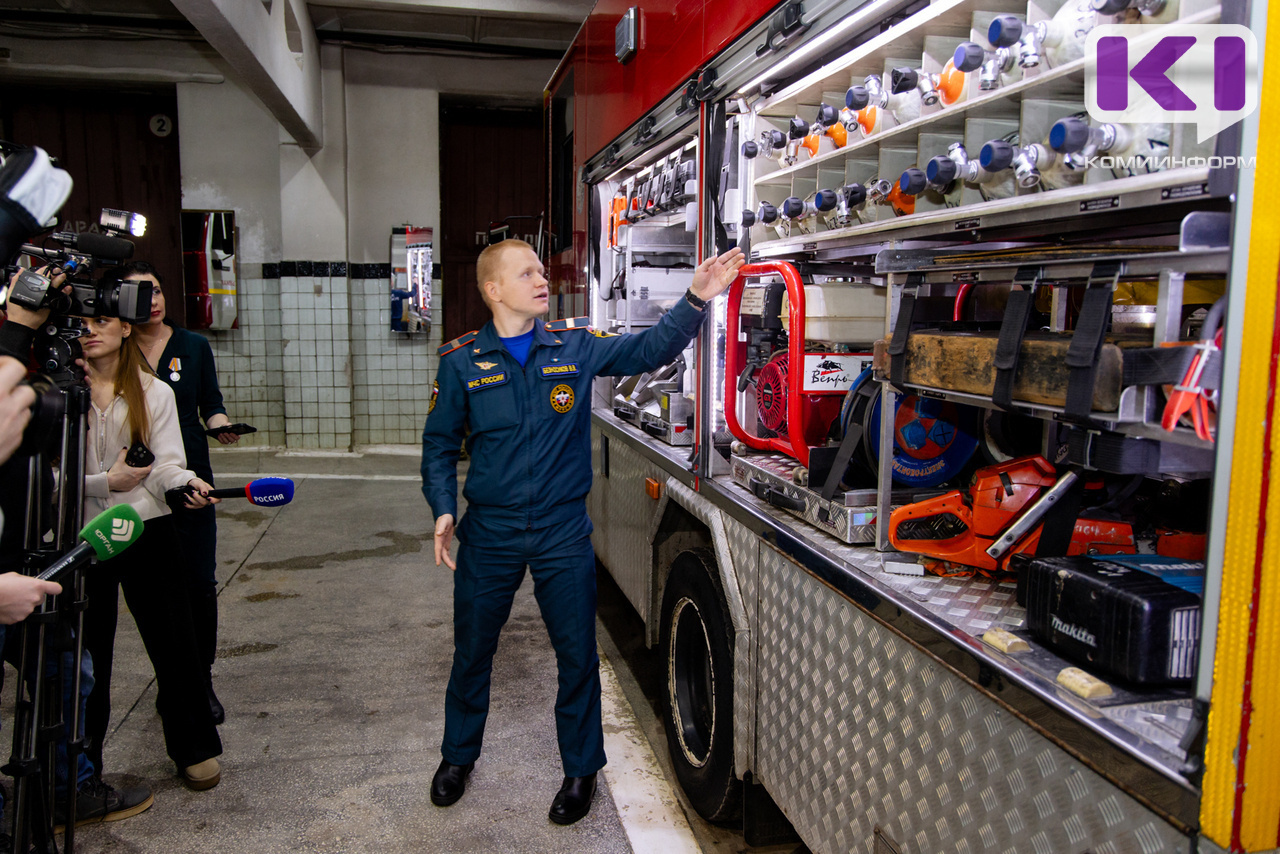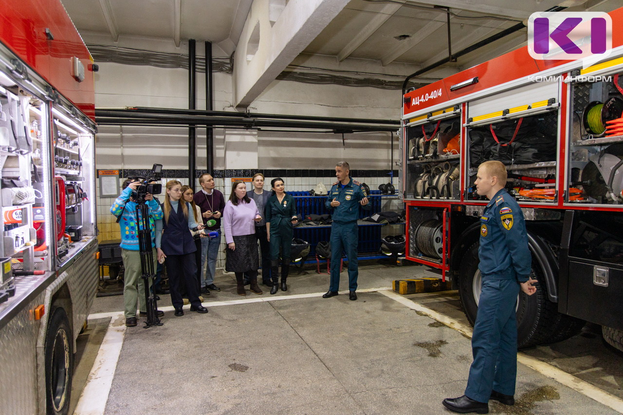 Экскурсия состоялась в рамках традиционной встречи руководителя ГУ МЧС Коми Алексея Пархомовича с республиканскими СМИ. Часть находится в самом сердце Сыктывкара. А вокруг детские и взрослые лечебные учреждения, психиатрическая больница, кардиология.