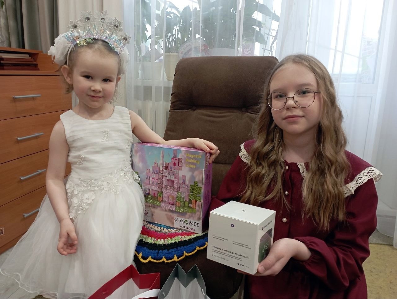 От главы Республики Коми девочки получили долгожданные подарки в рамках всероссийской благотворительной акции "Ёлка желаний": 4-летняя Марианна – магнитный конструктор, а 12-летняя Маргарита – умную колонку.