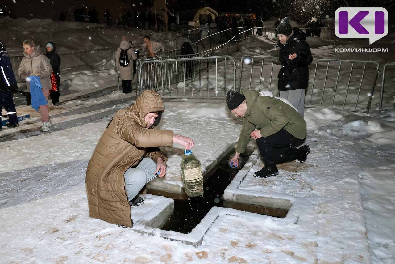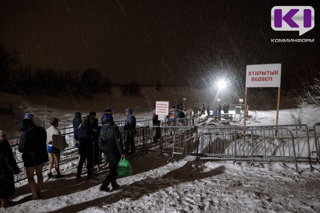 Всего в Сыктывкаре оборудовано четыре купели: в местечке Красная Гора (Кирульская курья), на реке Сысоле в районе понтонного моста, в поселке Нижний Чов и в Эжве на реке Вычегда в районе лодочной станции. Три из них уже открыты, к четвертой, в районе понтонного моста в Заречье сегодня в 11:00 пройдет крестный ход. Великое освящение воды пройдет на правом берегу реки Сысолы (возле понтонного моста) 19 января с 12:15 -12:30. После этого сразу начнется крещенское купание - с 12:30. Кстати, в этом году у купели в Заречье будут раздавать горячий чай и выпечку. Всего в Коми откроют 40 официальных купелей.
