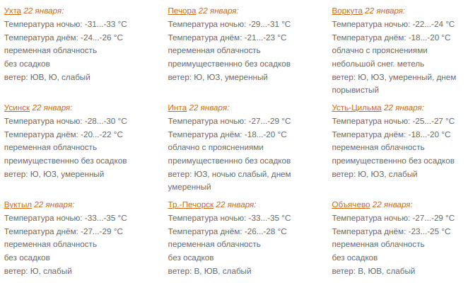 Прогноз погоды по республике на 22 января подготовил Коми ЦГМС.