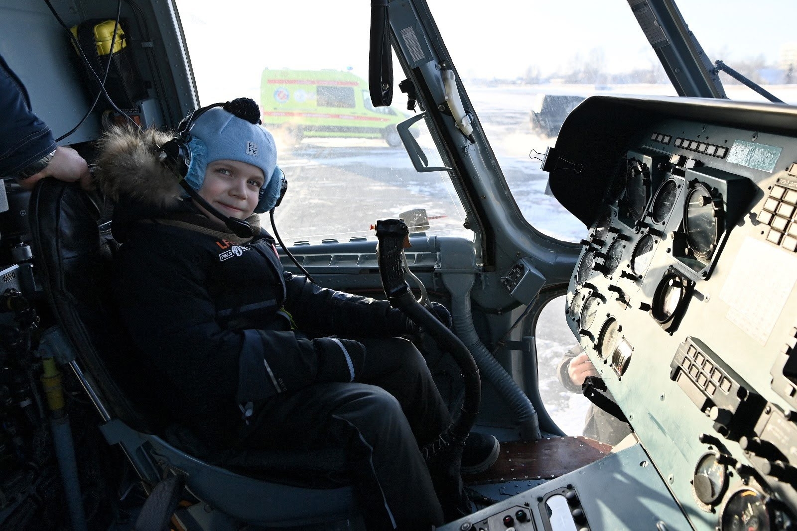После знакомства с тренажёром Савелий сел за штурвал уже настоящего вертолёта – такую возможность предоставила Национальная служба санитарной авиации Госкорпорации "Ростех". Командир воздушного судна Андрей Макаров, второй пилот Дмитрий Новосёлов и бортмеханик Олег Зайко показали вертолёт МИ-8 и рассказали о своей профессии. К слову, до экскурсии Савелий хотел стать врачом, когда вырастет. Но, познакомившись с авиацией ближе, решил, что до конца ещё не определился.