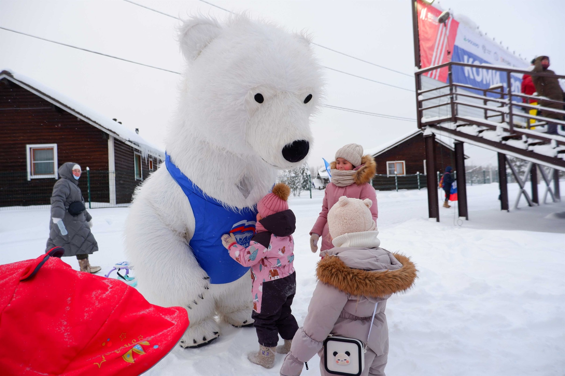 Созданы все условия для болельщиков и гостей: полевая кухня с горячим питанием, пункт проката лыжного инвентаря и отдельный маршрут для катания всех желающих, а самых маленьких гостей развлекает огромной ростовой медведь. Ориентироваться гостям на территории комплекса помогают, в том числе волонтёры "Молодой Гвардии Единой России".