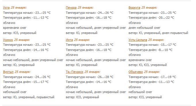 В республике 25 января облачно. Небольшой, местами умеренный снег, сообщает Коми ЦГМС.