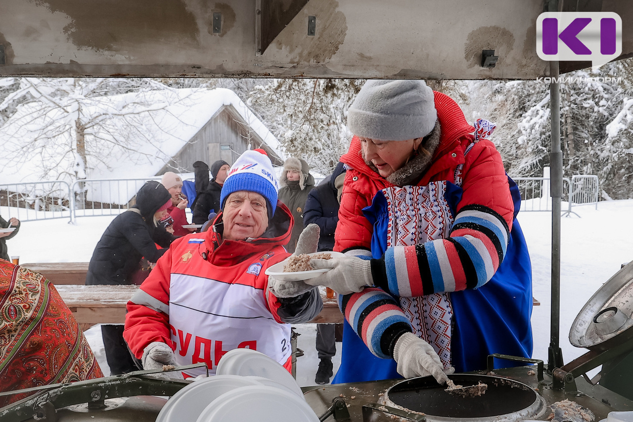 А на подступах к трибунам кипела своя жизнь: волонтеры в народных костюмах зазывали на гречневую кашу: "Приходите к нам за кашей, поболеть за наших!". Дети резвились на веселых стартах, взрослые обсуждали гонку.