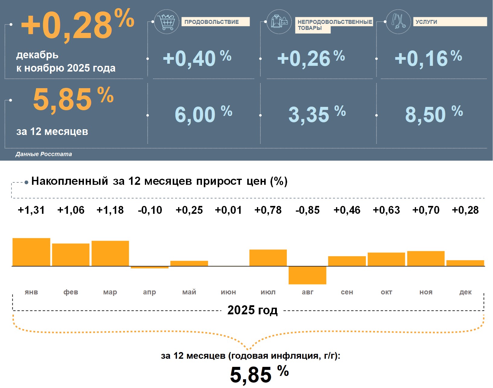 Прирост цен в декабре к ноябрю 2025 года был умеренным – 0,3% (в ноябре – 0,7%).