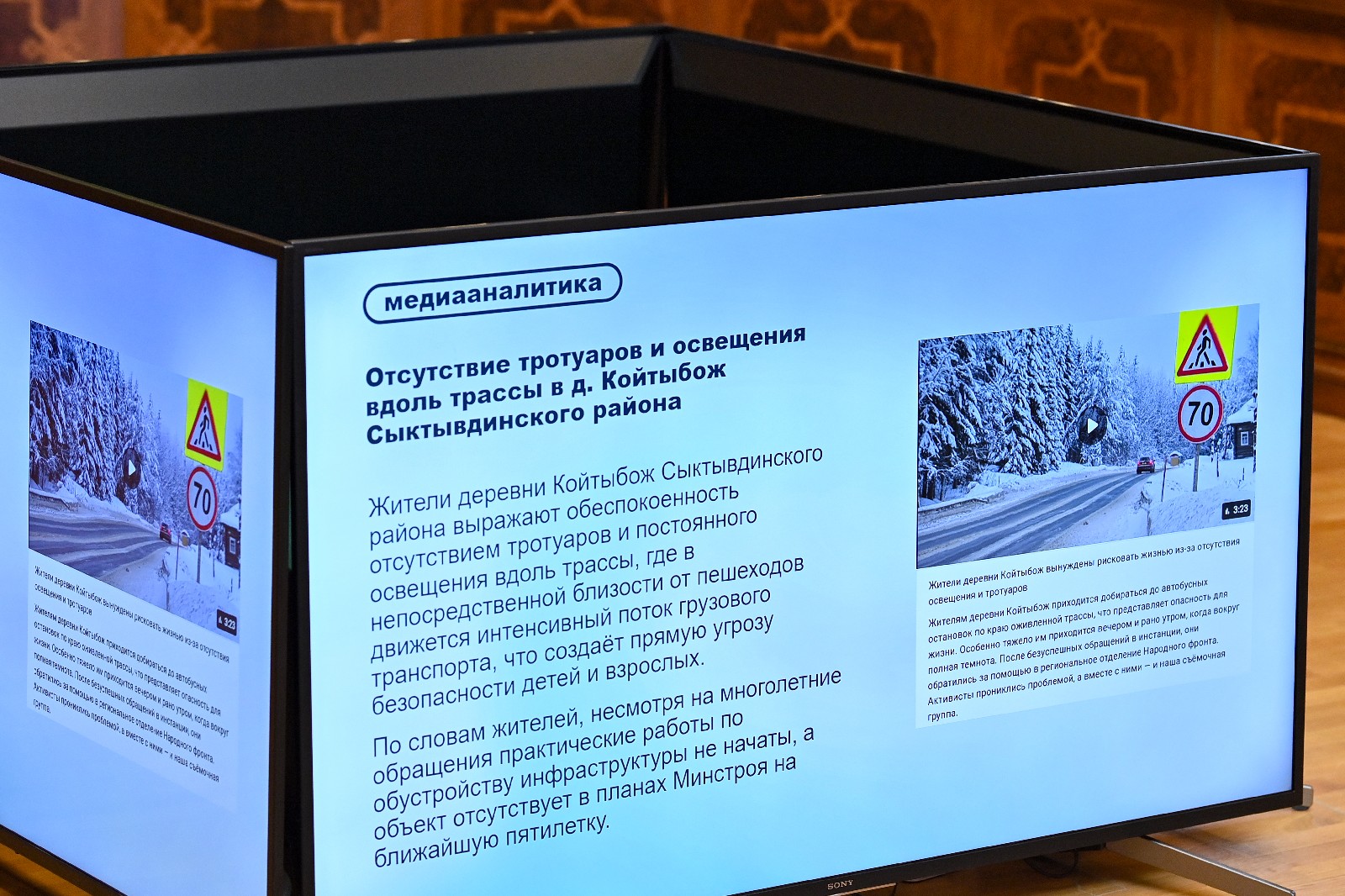 В ходе совещания Ростислав Гольдштейн отреагировал на обращения жителей деревни Койтыбож Сыктывдинского района в социальных сетях. Люди обеспокоены отсутствием тротуаров и постоянного освещения вдоль участка региональной трассы Сыктывкар – Ухта, где в непосредственной близости от пешеходов проходит интенсивный поток грузового транспорта. Это создаёт прямую угрозу безопасности детей и взрослых.
