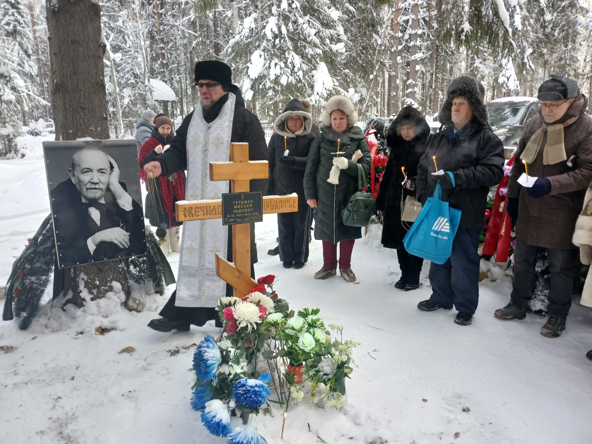 Среди присутствовавших на панихиде были друзья и коллеги маэстро, представители Союза композиторов Республики Коми, Республиканского дома творчества, Колледжа искусств Республики Коми, Гимназии искусств имени Ю.А.Спиридонова, Театра оперы и балета Республики Коми, Национальной библиотеки Республики Коми, Сыктывкарской детской музыкальной школы имени Я.С.Перепелицы, совета ветеранов г. Сыктывкара.