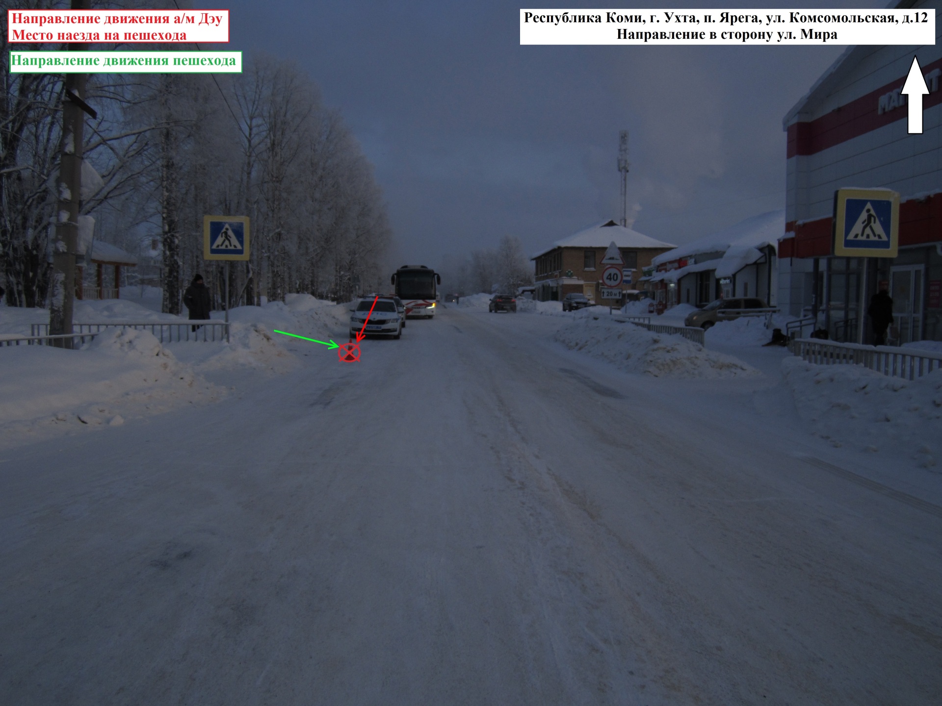 ДТП произошло 2 февраля в 13:55. Женщина 1960 года рождения, находящаяся за рулем Daewoo Matiz, двигалась по ул. Октябрьской со стороны ул. Мира в направлении ул. Лермонтова пгт. Ярега. Напротив д.10 по ул. Лермонтова водитель совершила наезд на пешехода, который переходил проезжую часть вне пешеходного перехода.
