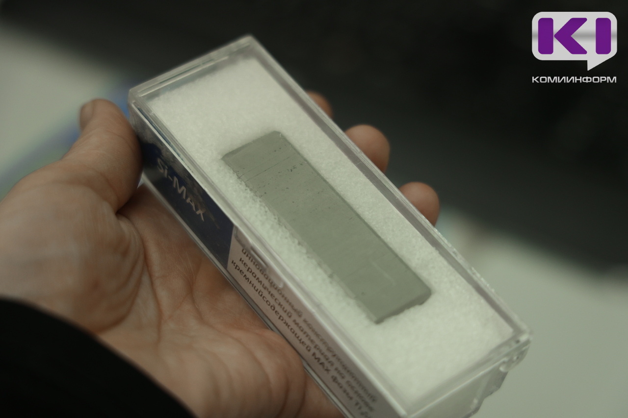 На столе в лаборатории кандидата химических наук, старшего научного сотрудника, руководителя группы в лаборатории керамического материаловедения Елены Истоминой, на первый взгляд, металлический брусок, но когда берешь его в руки поражаешься контрасту в стиле "ожидание — реальность": он совсем легкий. Если говорить научным языком, то это керамика на основе MAX фазы Ti₃SiC₂, легированная цирконием.