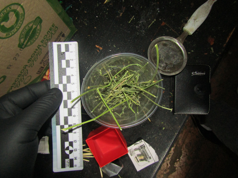 В ходе обыска по месту жительства подозреваемого правоохранители обнаружили растение с корневой системой, а также бутылку и коробку с веществом растительного происхождения.