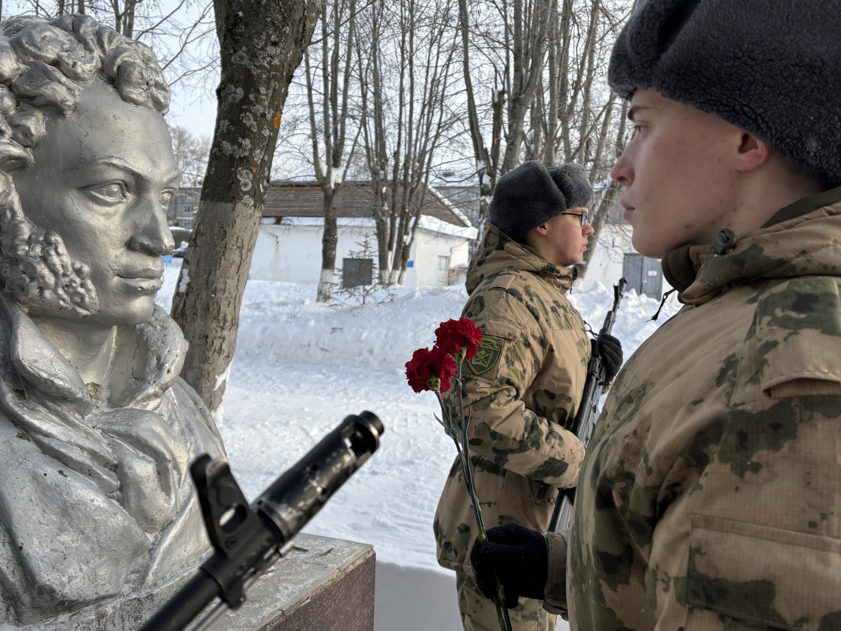 10 февраля, в день памяти великого русского поэта Александра Сергеевича Пушкина, военнослужащие Центра подготовки личного состава Северо-Западного округа войск национальной гвардии Российской Федерации почтили память классика и возложили цветы к его памятнику, сообщает пресс-служба Управления Росгвардии по Коми. Командование воинской части подчеркнуло значимость творчества Александра Пушкина и его вклад в развитие русского языка.