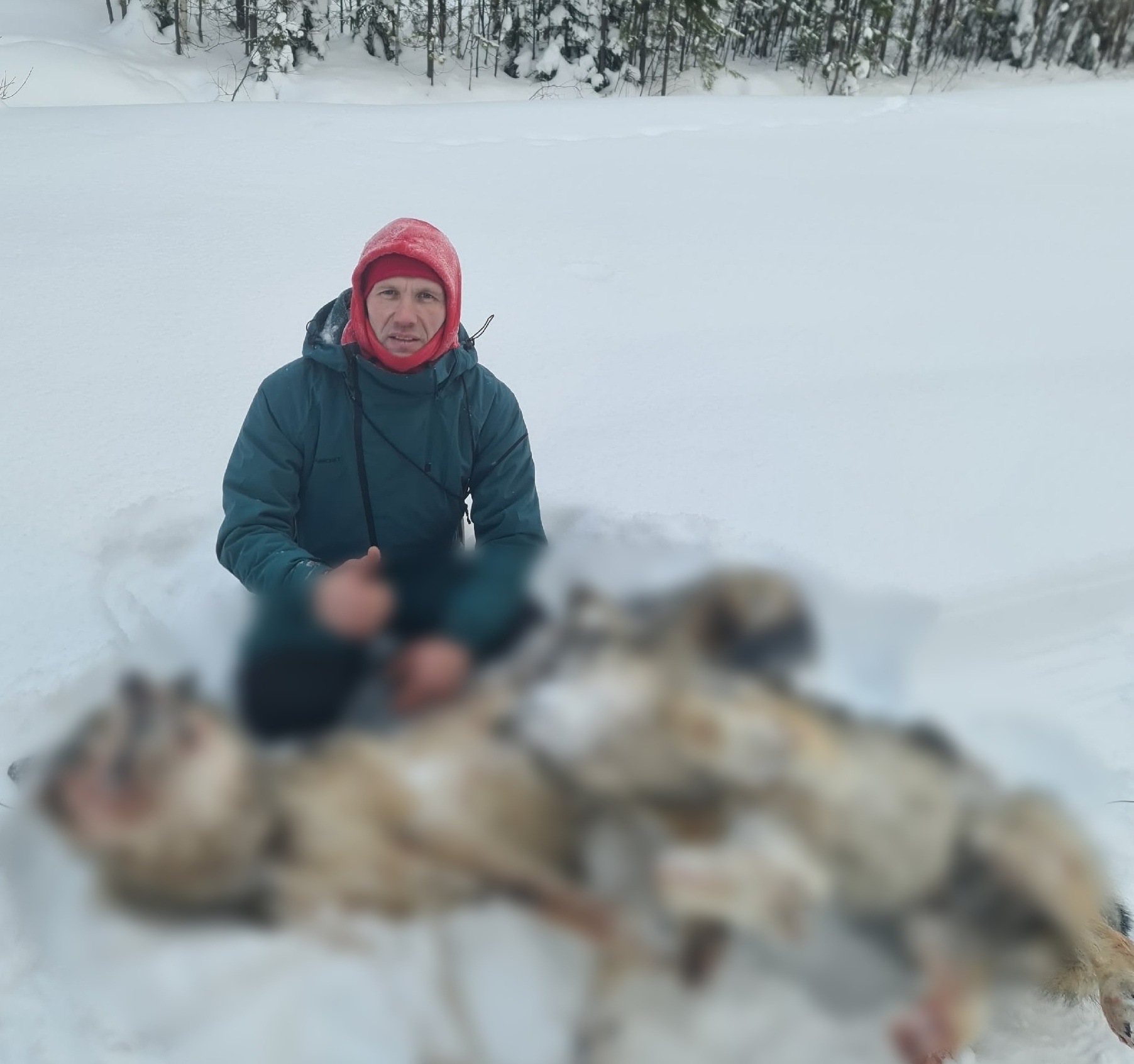 Серых хищников удалось добыть 8 февраля на территории арендованного охотничьего хозяйства в районе Чухлэм. Охотник-профессионал Игорь Вихристюк использовал метод установки петель на регулярно пополняемой приваде.
