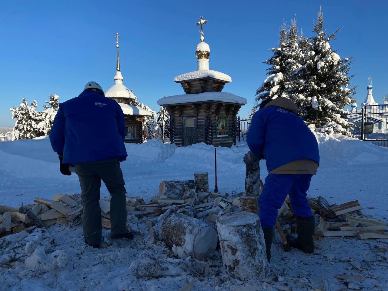 Без лишних слов они взяли в руки топоры и лопаты: кололи дрова, складывали их в аккуратные поленницы, чистили дорожки от снега. В морозный январский день их труд стал настоящей поддержкой для обители.