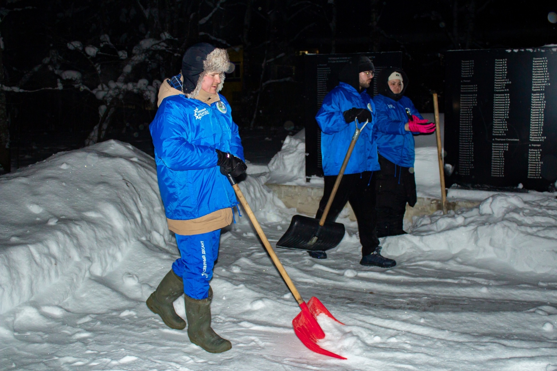 Вечером же ребята вышли чистить дорожку к памятнику участникам Великой Отечественной войны и прилегающую к нему территорию. Почистили, привели в порядок не ради галочки, а от всего сердца.