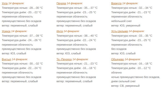 Прогноз погоды по республике на 14 февраля подготовил Коми ЦГМС.