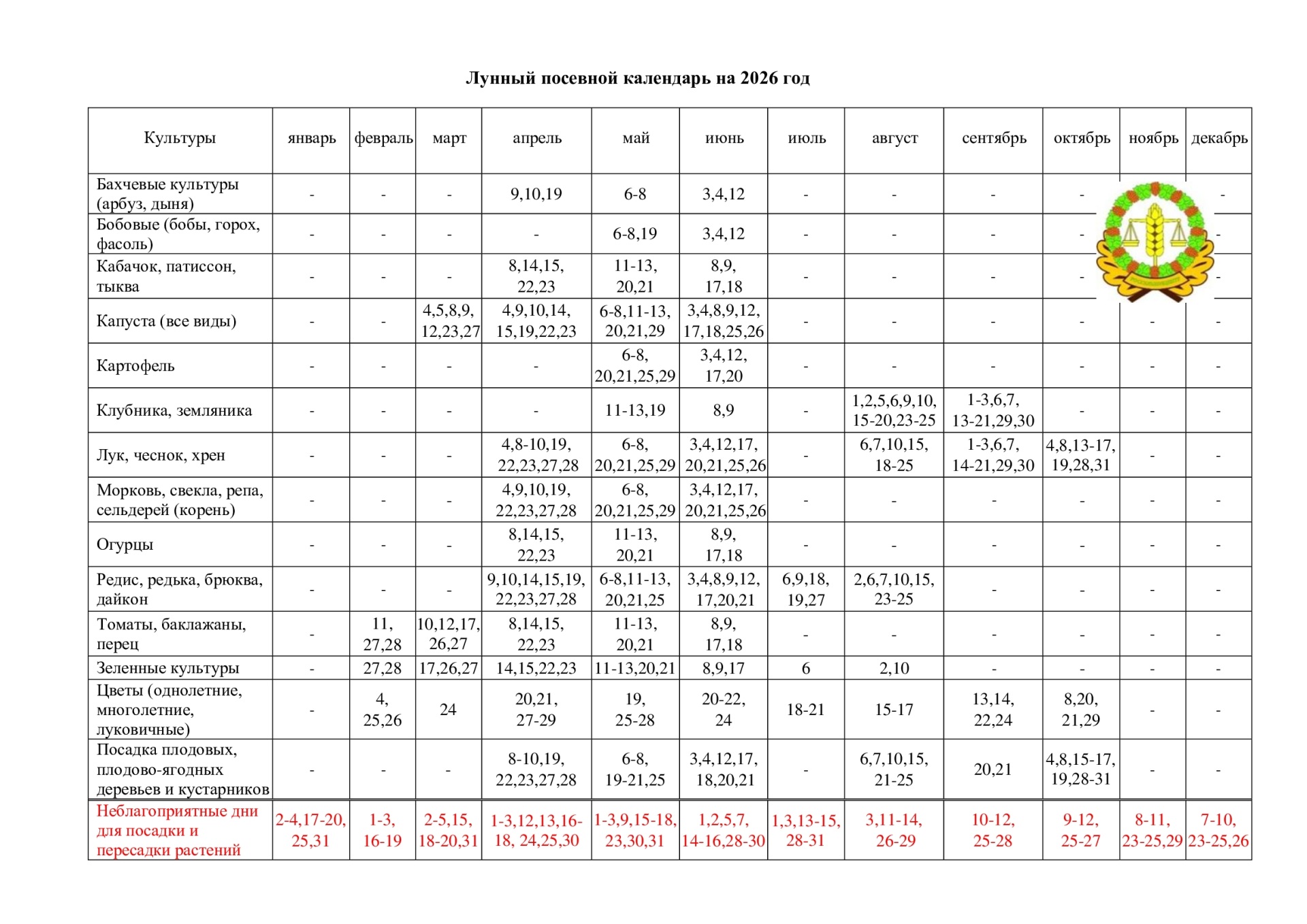 Россельхозцентр Коми подготовил Лунный посевной календарь для огородников на 2026 год с учетом климатических особенностей региона.