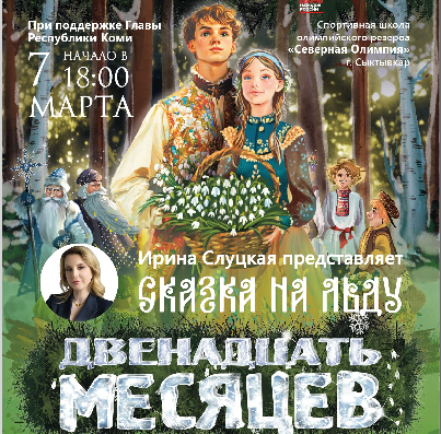 Премьера проекта известной российской фигуристки Ирины Слуцкой "Двенадцать месяцев" состоится 7 и 8 марта В Коми. Уникальные спектакли пройдут при поддержке главы Республики Коми Ростислава Гольдштейна в рамках Международного женского дня.