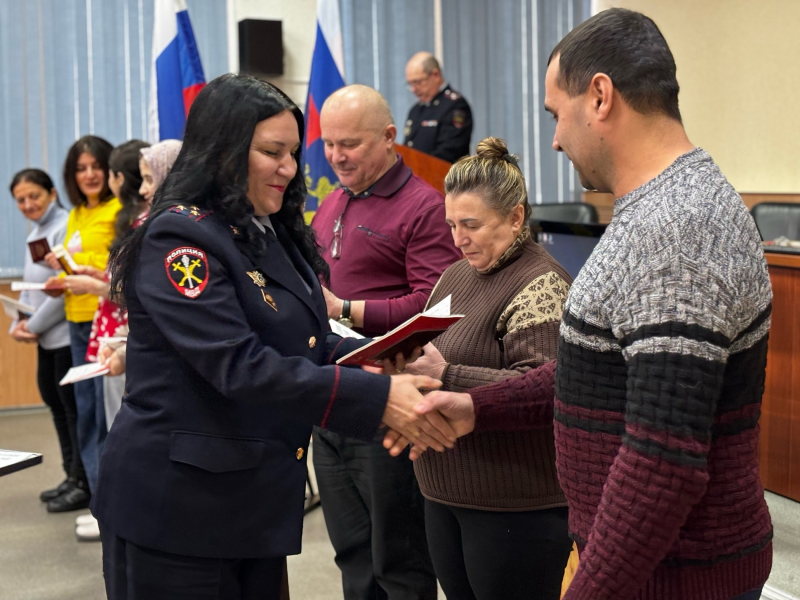 "Дорогие друзья! Сегодня вы стали полноправными гражданами великой страны. Это не просто документ, это ваш выбор, ваше стремление жить и трудиться на благо России. Я хочу пожелать вам мира, стабильности и успехов на вашей новой Родине", - обратилась к новым россиянам начальник УМВД Оксана Скибина-Комиссарова.