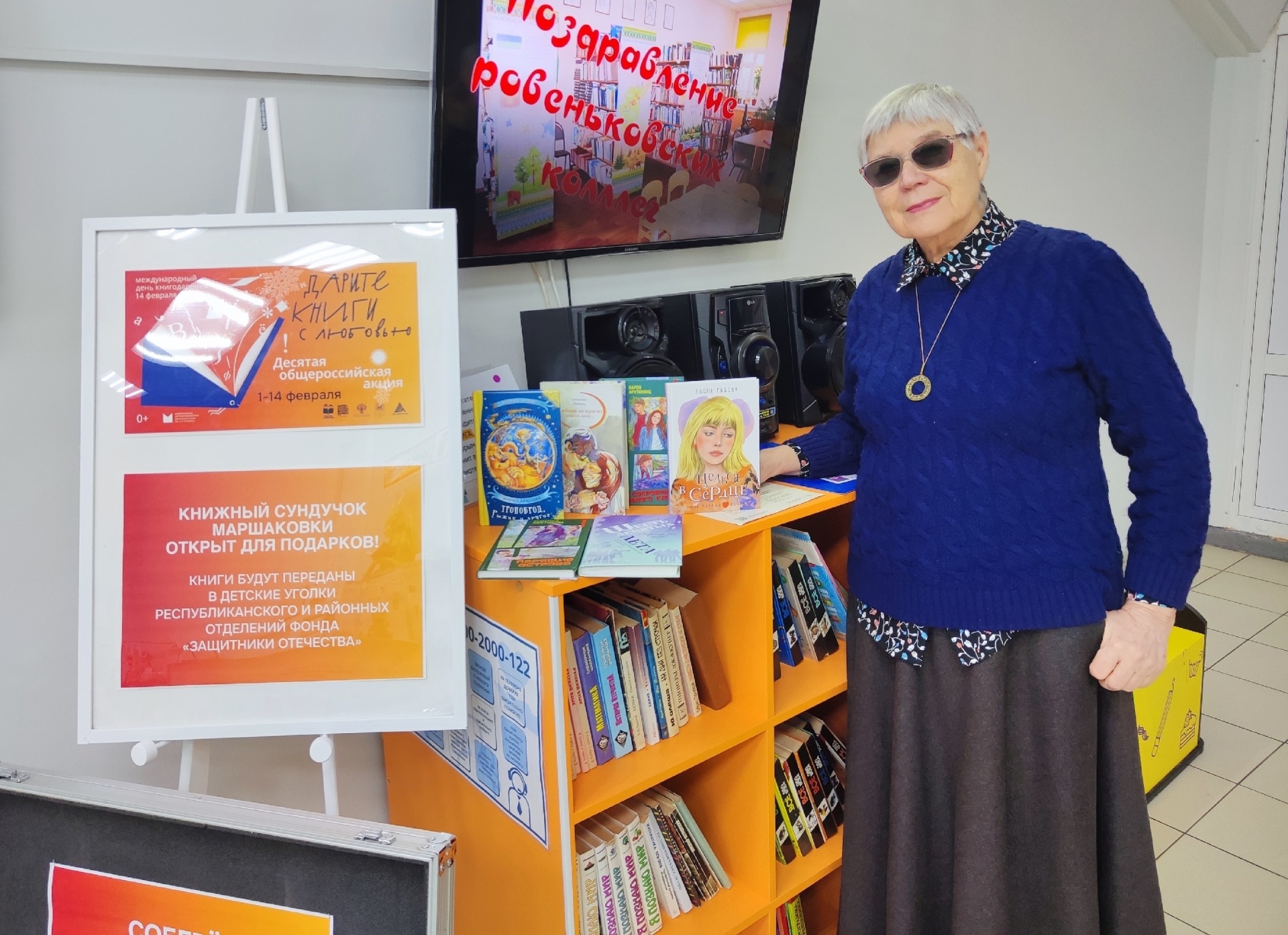 Национальная детская библиотека им. С.Я. Маршака уже в десятый раз приняла участие в событии. Читатели, друзья и партнёры библиотеки передали в дар 459 экземпляров новых книг. В числе благотворителей – постоянные читатели и сами библиотекари, а также детский писатель Елена Габова, председатель регионального отделения Союза женщин России Галина Лапшина, член Правительства Республики Коми Наталья Хозяинова, председатель регионального отделения ОГОО "Российский фонд культуры" в Республике Коми Дмитрий Степанов. Кроме того, в акции приняли участие Общественная палата Республики Коми, Попечительский Совет Маршаковки, Министерство закупок Республики Коми, Детский сад № 13 и Почта Россииг. Сыктывкара. Книги, собранные за время события в этом году, будут переданы в филиал Фонда "Защитники Отечества".