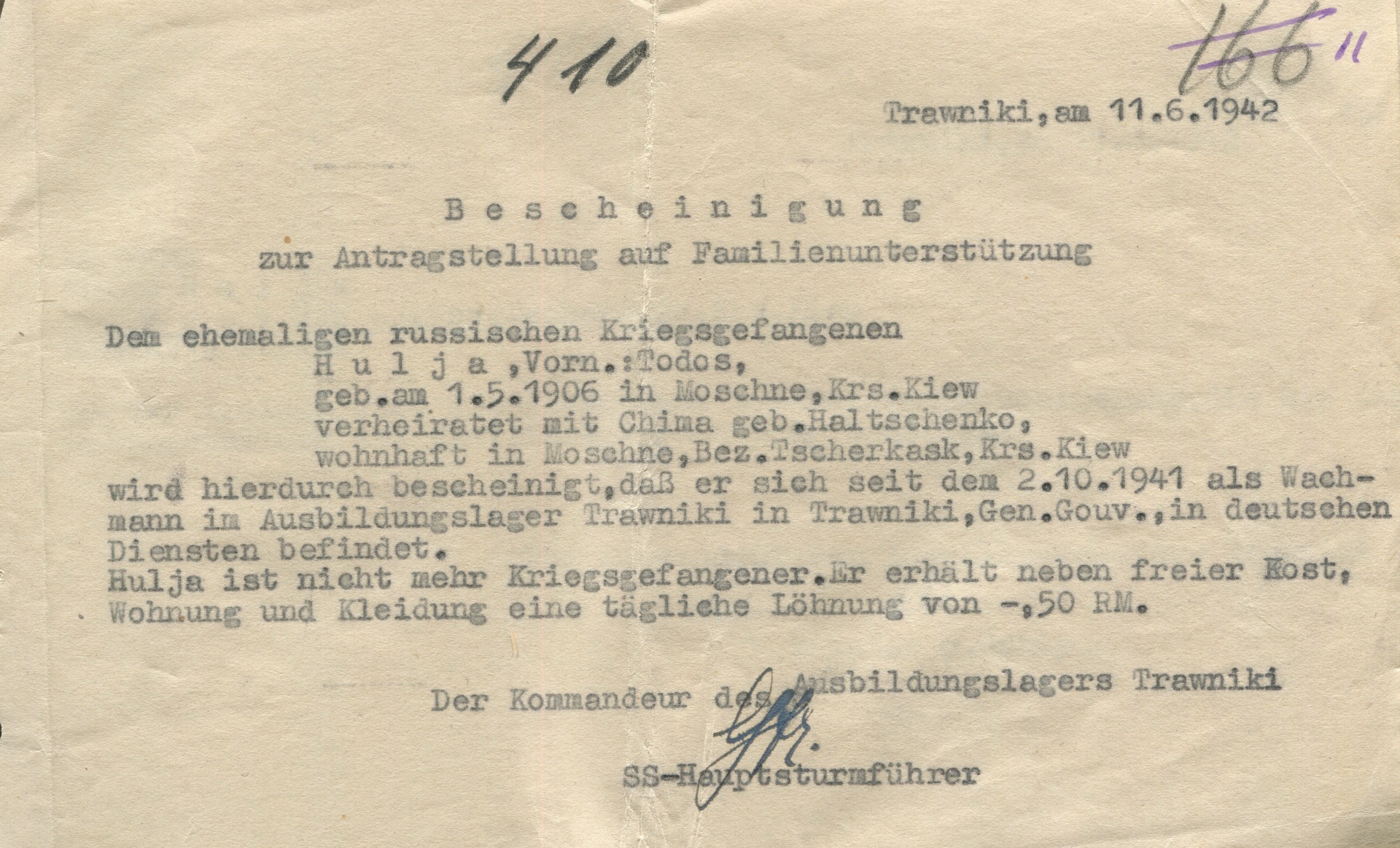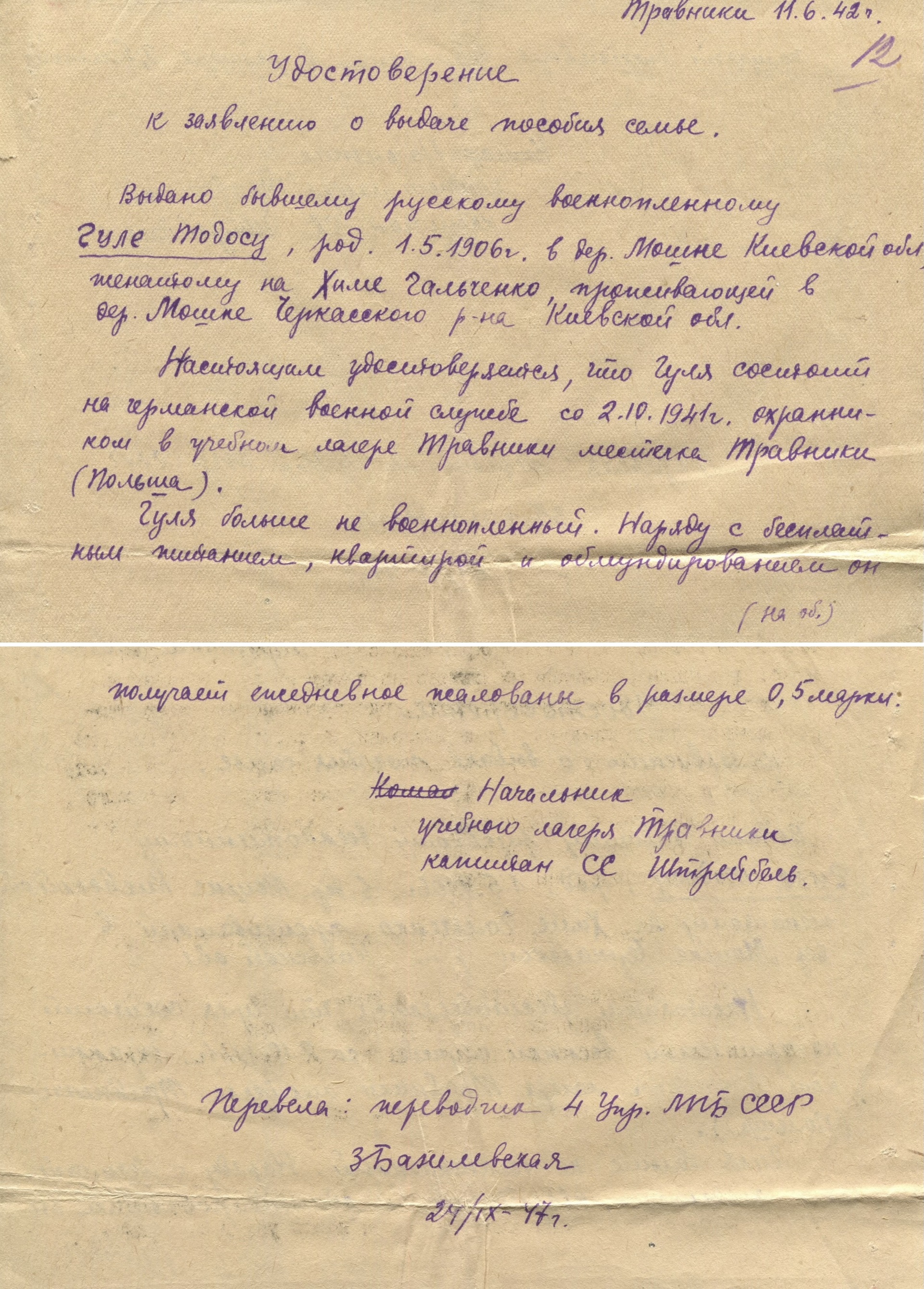 Архивные документы раскрывают преступную деятельность украинца Гули Тодоса-Феодосия Зиновьевича, который добросовестно служил немцам до капитуляции Германии.