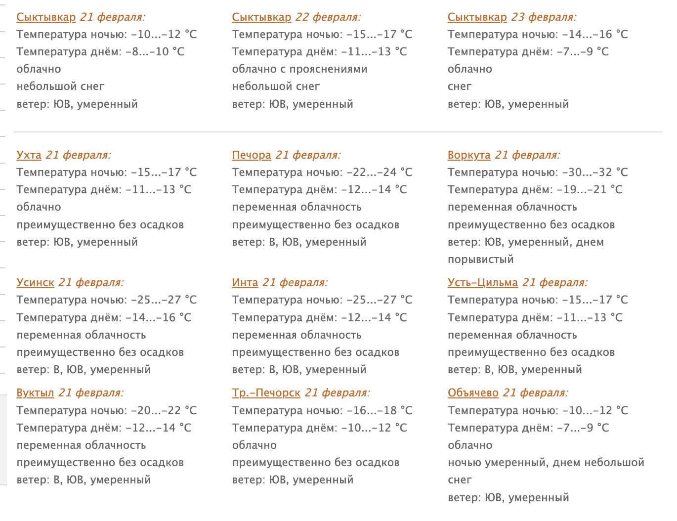 Погода в Коми 21 февраля: южный ветер, небольшой снег