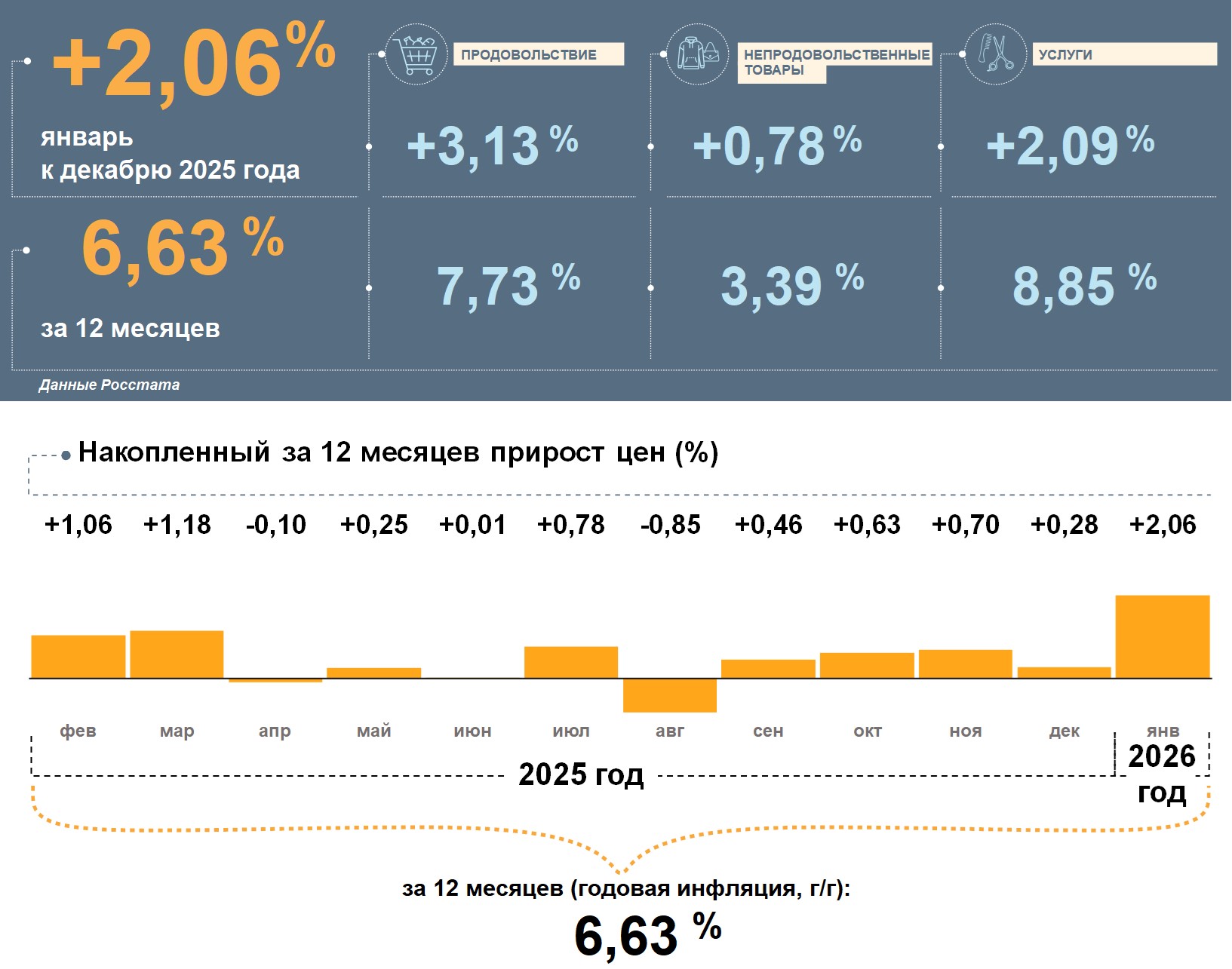 "Годовая инфляция в стране и регионе ускорилась. Это связано с временным усилением роста цен в январе под влиянием разовых факторов: повышением НДС, акцизов и индексацией тарифов. Эффект от этих изменений привел к удорожанию широкого круга товаров и услуг в республике. После исчерпания разовых факторов рост цен вновь замедлится, – отметил эксперт регионального Отделения Банка России Виктор Старцев. – Чтобы годовая инфляция возобновила устойчивое снижение, общий спрос в экономике должен расти сдержаннее. Банк России обеспечит это своей политикой. По прогнозу Банка России, инфляция в 2026 году опустится до 4,5–5,5%, в 2027 году достигнет 4% и стабилизируется на цели в дальнейшем".