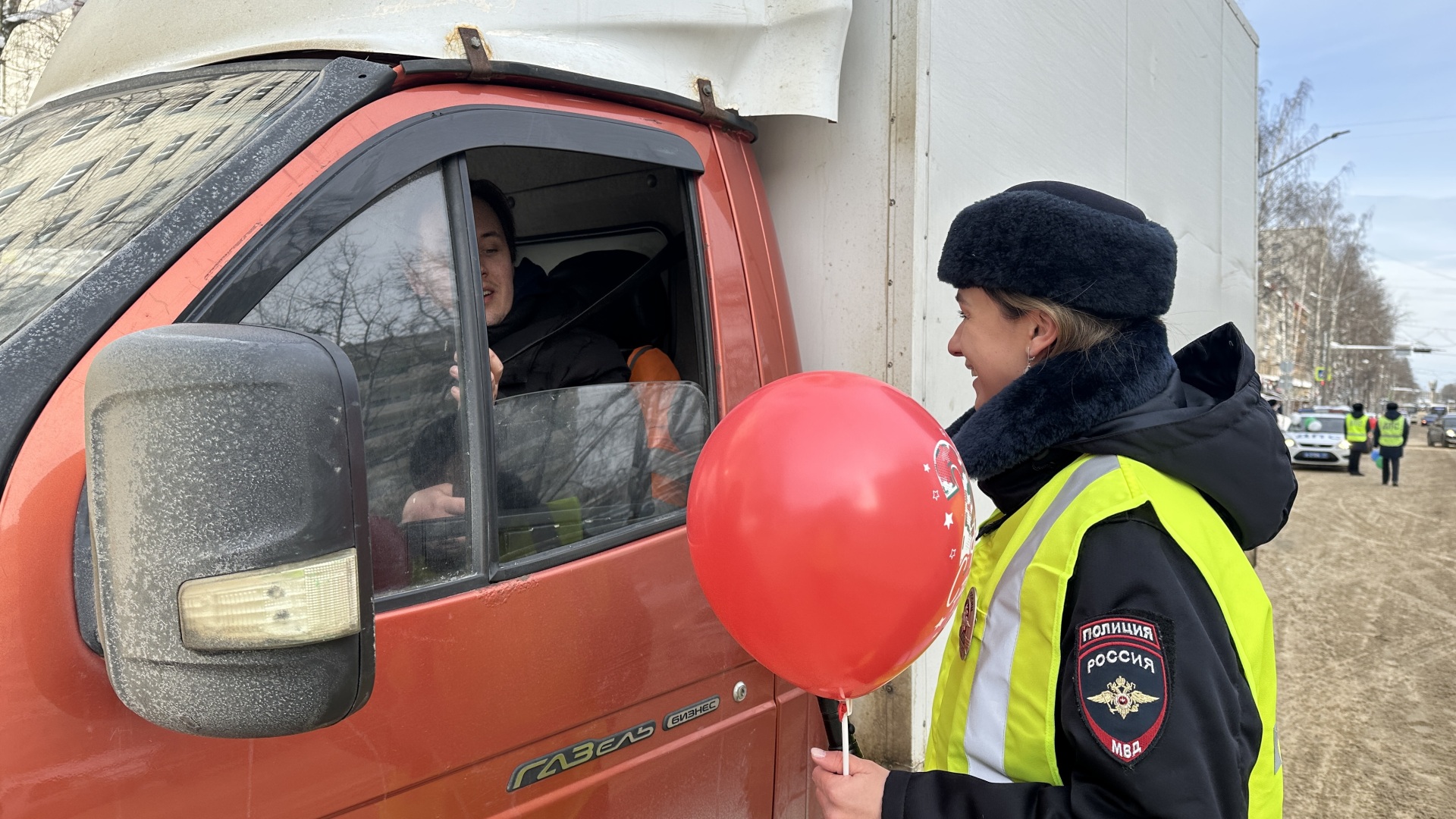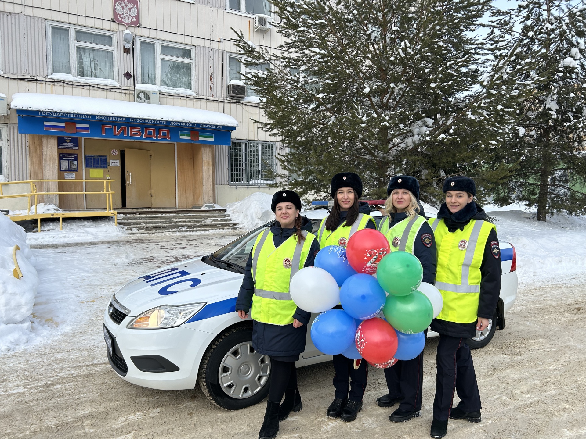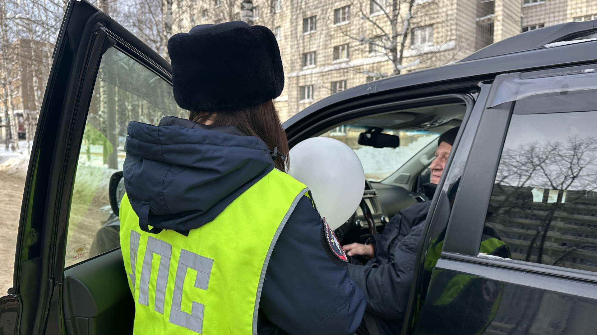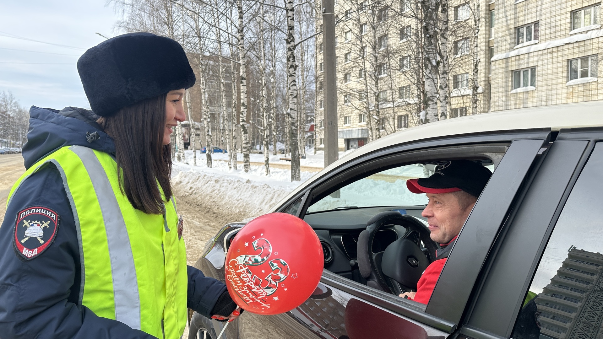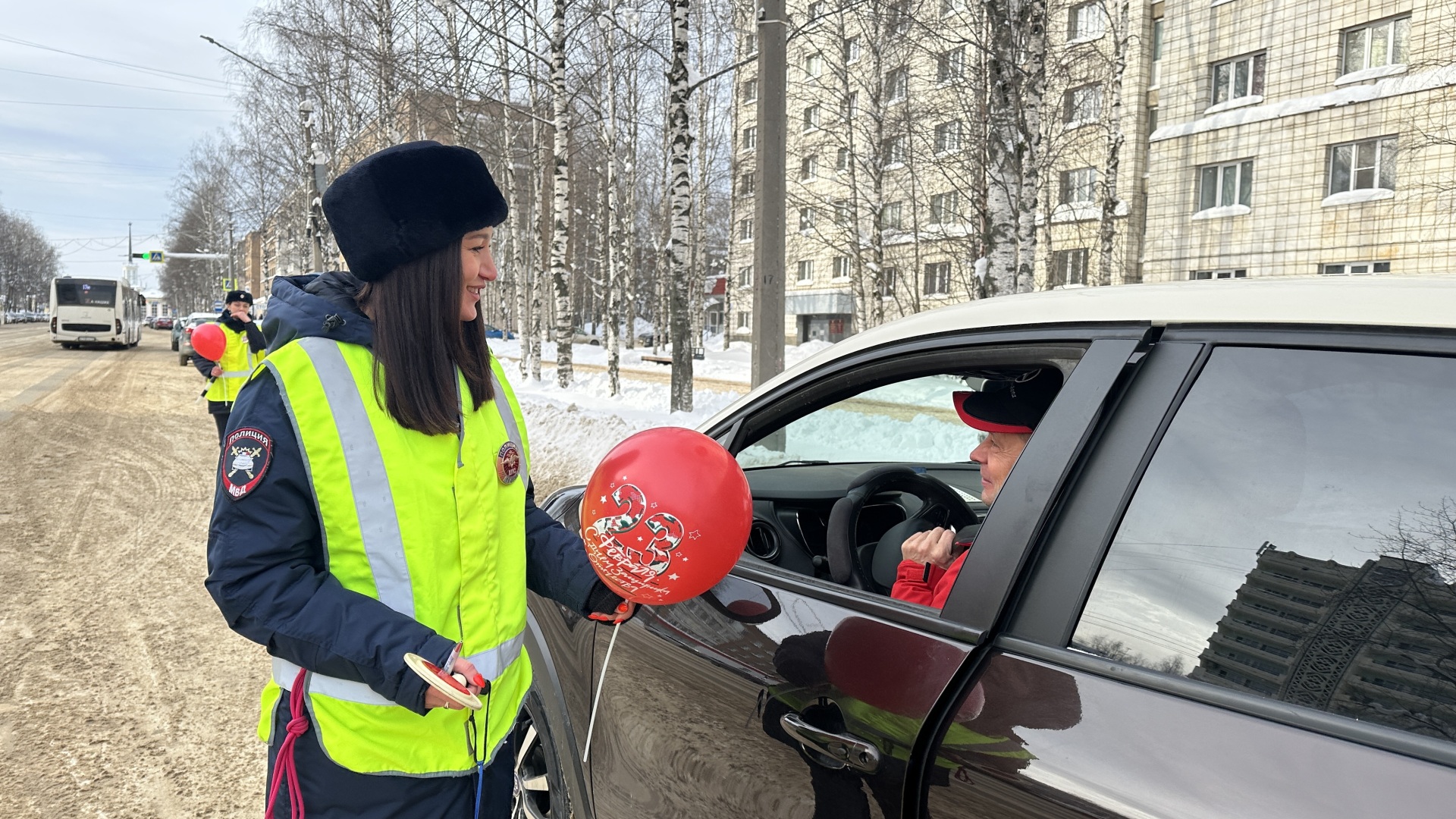 В Сыктывкаре женский патруль Госавтоинспекции поздравил водителей-мужчин с Днем защитника Отечества