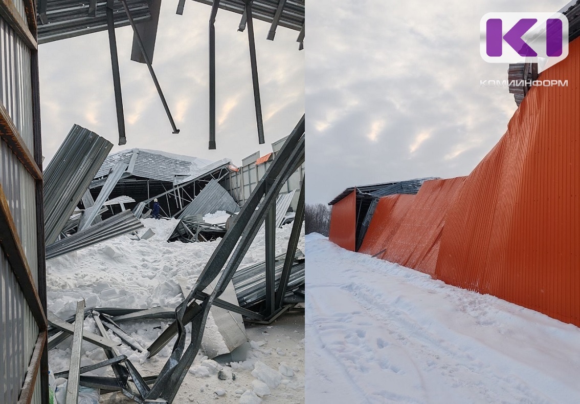 Как сообщили в ГУ МЧС Коми, по результату осмотра установлено, что произошло обрушение двускатной крыши ангара. Пострадавших нет. На место направлены силы и средства: РСЧС - 6 человек и 1 единица техники, в том числе от МЧС - 2 человека и 1 единица техники.