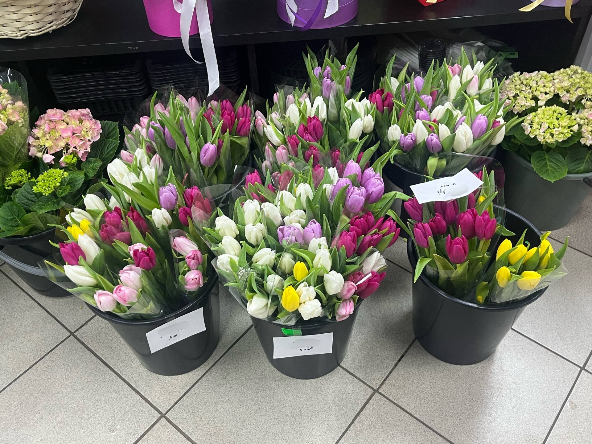 Цены на тюльпаны в этом году в среднем варьируются от 150 до 180 рублей за штуку. Букеты с тюльпанами можно найти и в специальных цветочных торговых точках, и в сетевых магазинах, где букеты продают относительно дешево. Например, в "Пятерочке", букет из 9 цветков обойдется в 899 рублей (около 100 рублей за штуку). Самый "дорогой" сердцу подарок - большой букет тюльпанов - в специализированном магазине, может обойтись почти в 10 тысяч рублей.