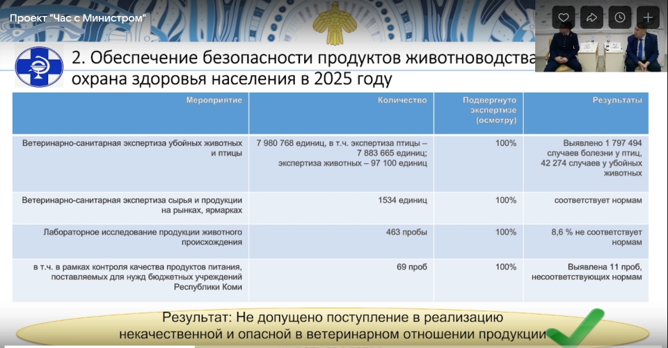 По словам А.Белых, в год Ветслужба предотвращает ущерб экономике республике от болезней животных примерно в 25 млн руб.