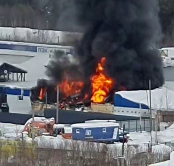 По данным телепрограммы "День", горит ангар Евролюкса.