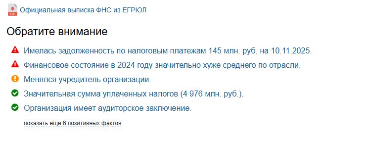 Портал audit-it.ru сообщает о задолженности по налогам в 145 млн руб. Финансовое состояние в 2024 году оказалось значительно хуже среднего по отрасли.