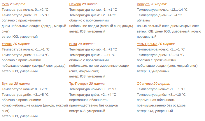 Прогноз погоды по республике на 20 марта подготовил Коми ЦГМС.