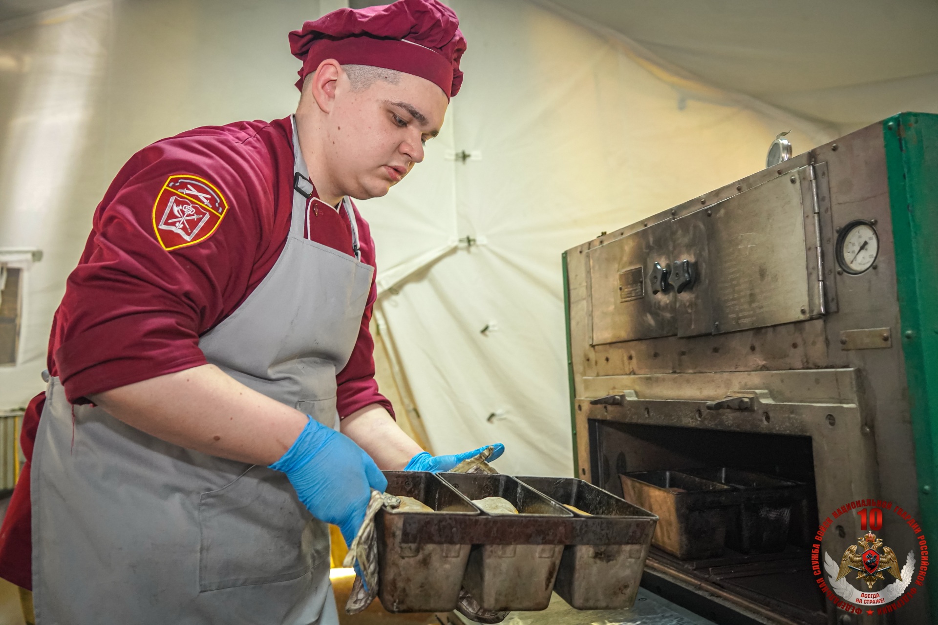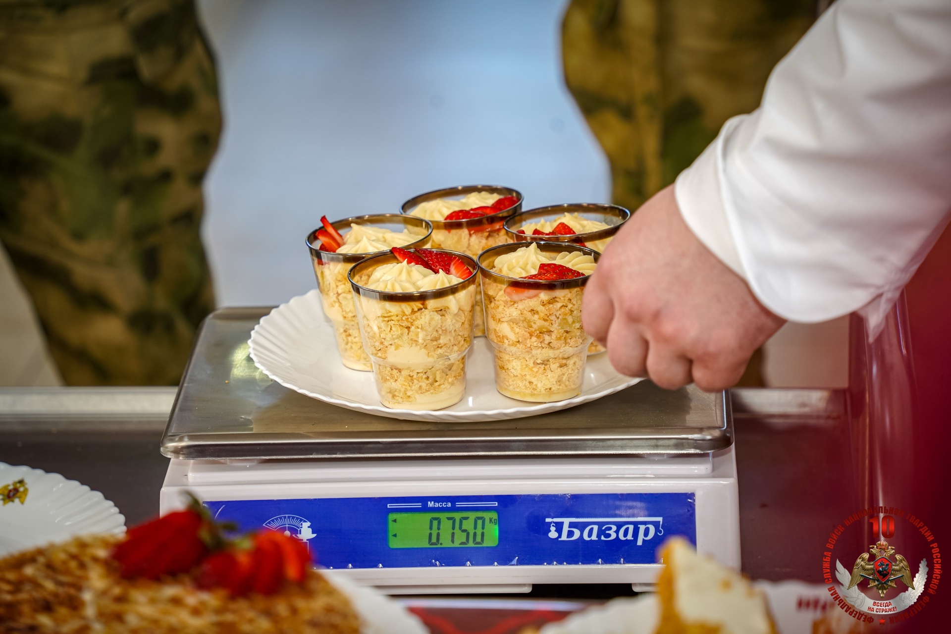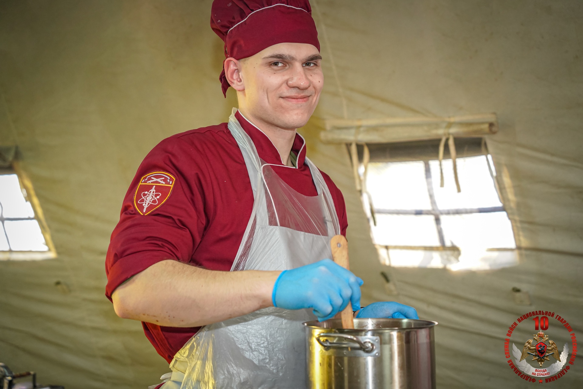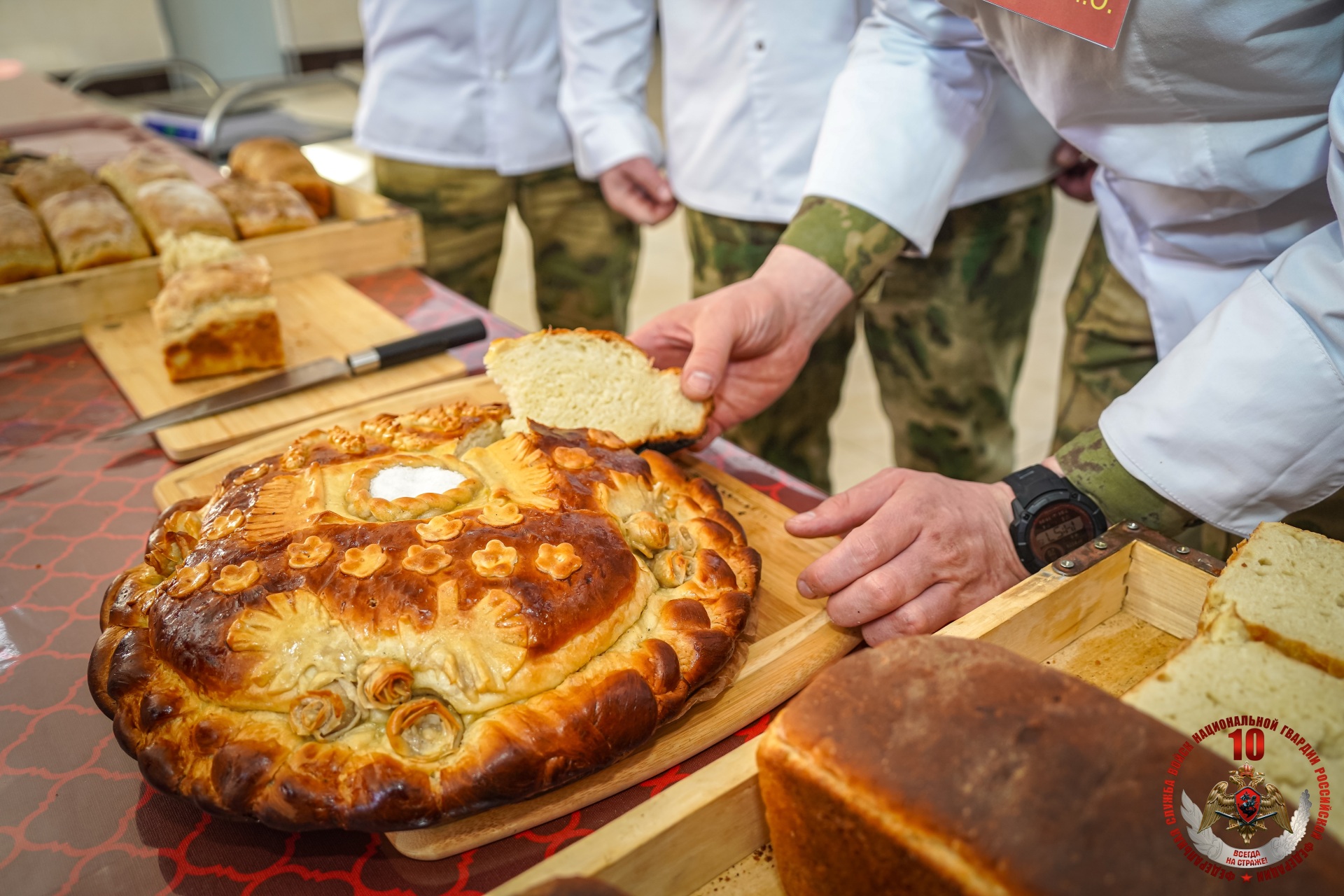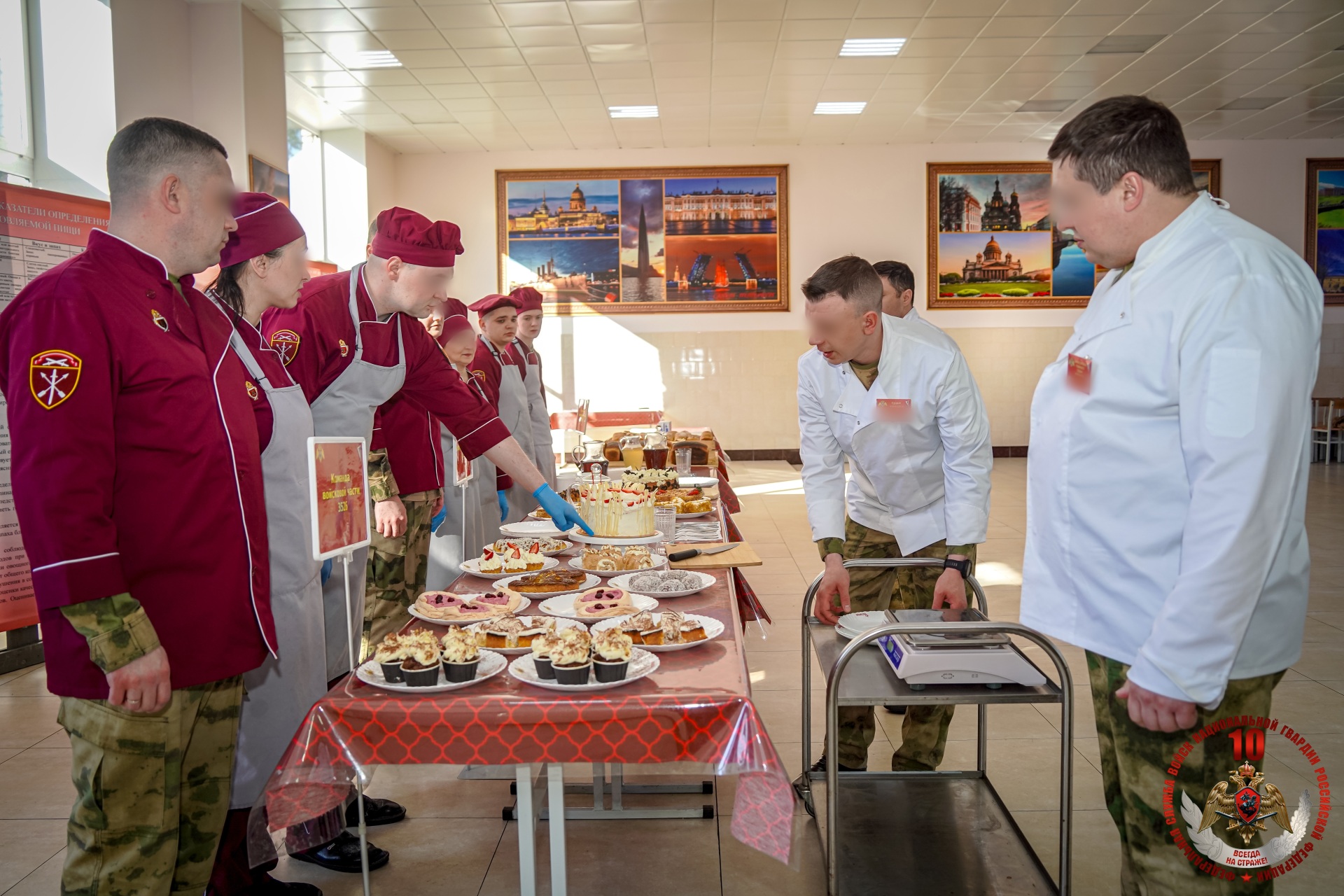 В Ленинградской области состоялся конкурс военных поваров Северо-Западного округа Росгвардии, посвященный 10-летию Росгвардии и 215-й годовщине войск правопорядка. В финале конкурса сошлись команды воинских частей и территориальных управлений Росгвардии из Санкт-Петербурга, Ленинградской, Псковской, Вологодской, Новгородской областям и Республики Коми.