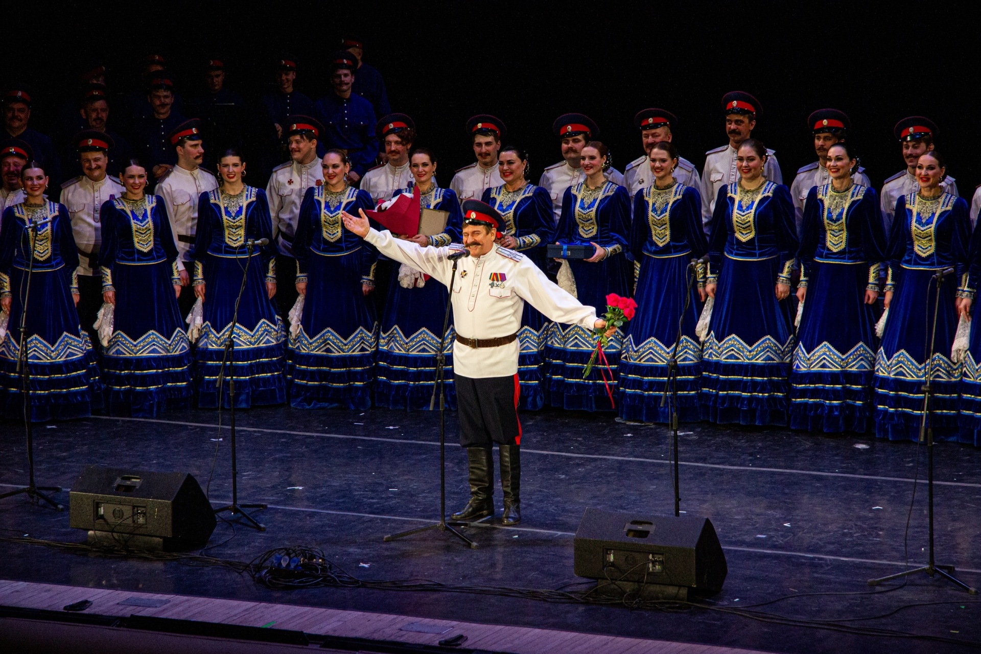 Зрители услышали и увидели песни и пляски, на протяжении 90 лет звучащие в программах ансамбля, а также премьерные номера. Среди них – постановки "Как за Доном, за рекою", "На майдане", "С Победой домой", "На кордоне", "Зимние забавы", "Вечер, вечер, матушка" и другие. В исполнении артистов прозвучат песни "Чёрный ворон", "Когда мы были на войне", "На крыле я спала", "Любо братцы", "Не для меня", "Дон течёт издалека".