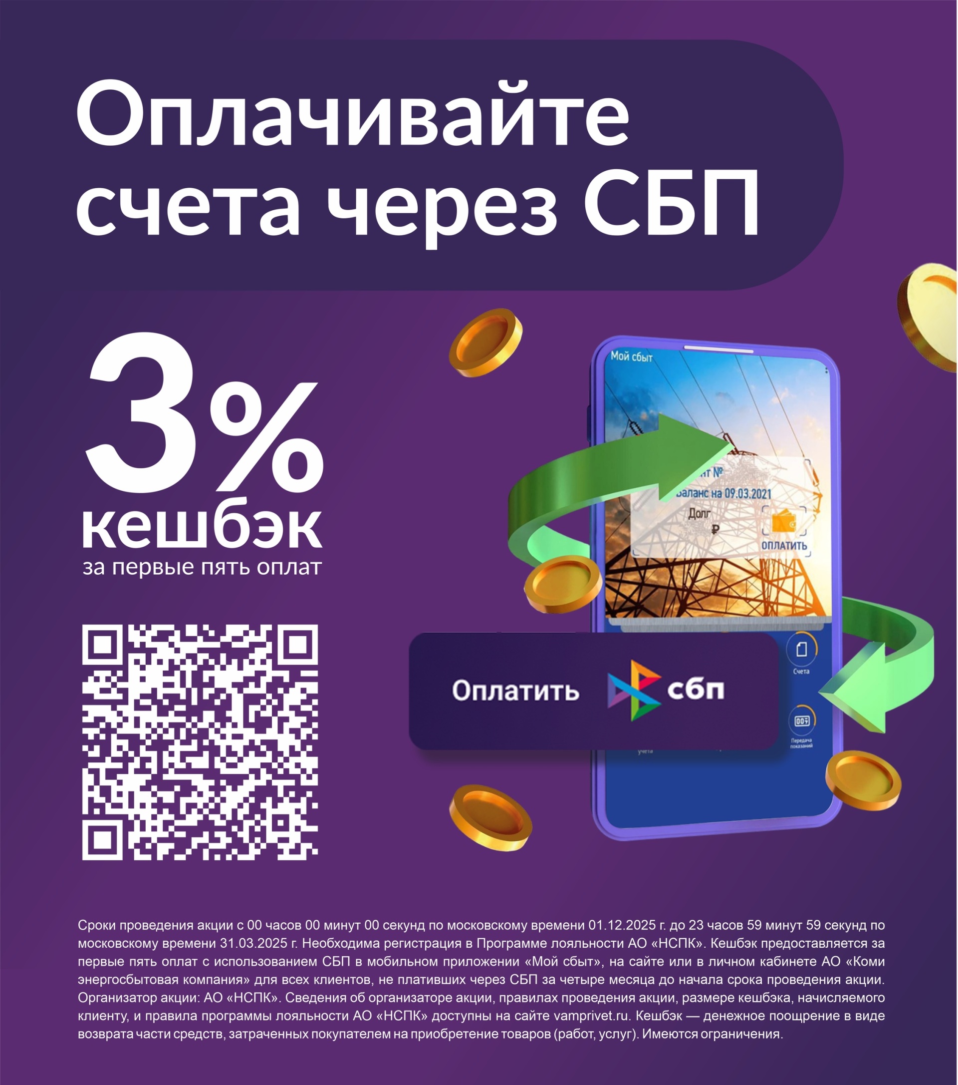 Подробности на сайте Коми энергосбытовой компании: Акция "Кешбэк за оплату ЖКУ через СБП" (komiesc.ru).