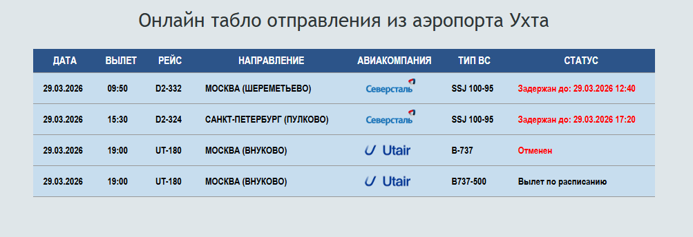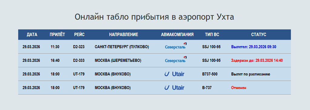 Несколько авиарейсов задержаны и отменены на отправление и прибытие в аэропорту Ухты.